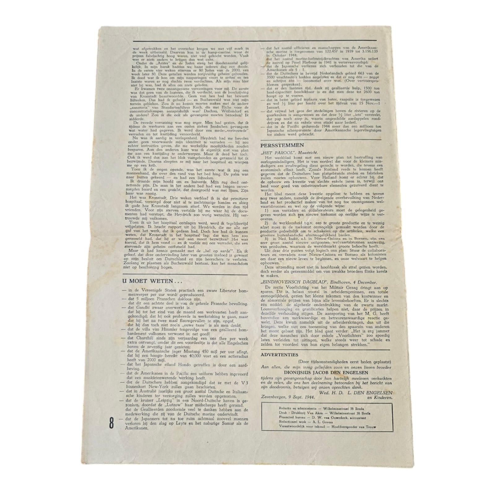 Krant Trouw 21-12-1944