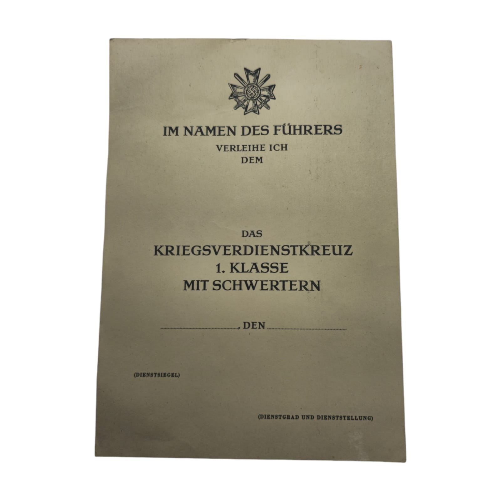 Item: KVK First class empty award document these document wear to be used for giving out medals to soldiers of the german army