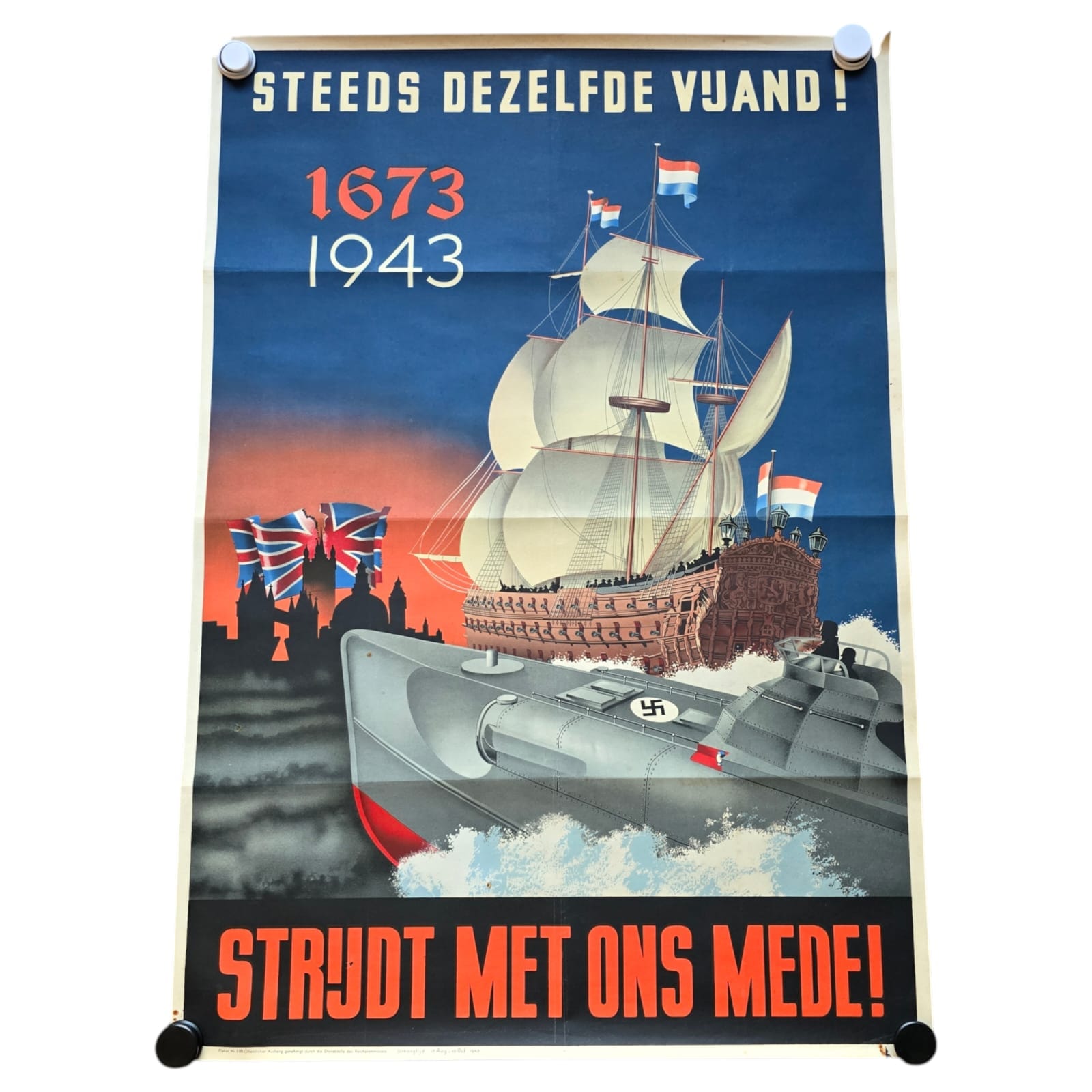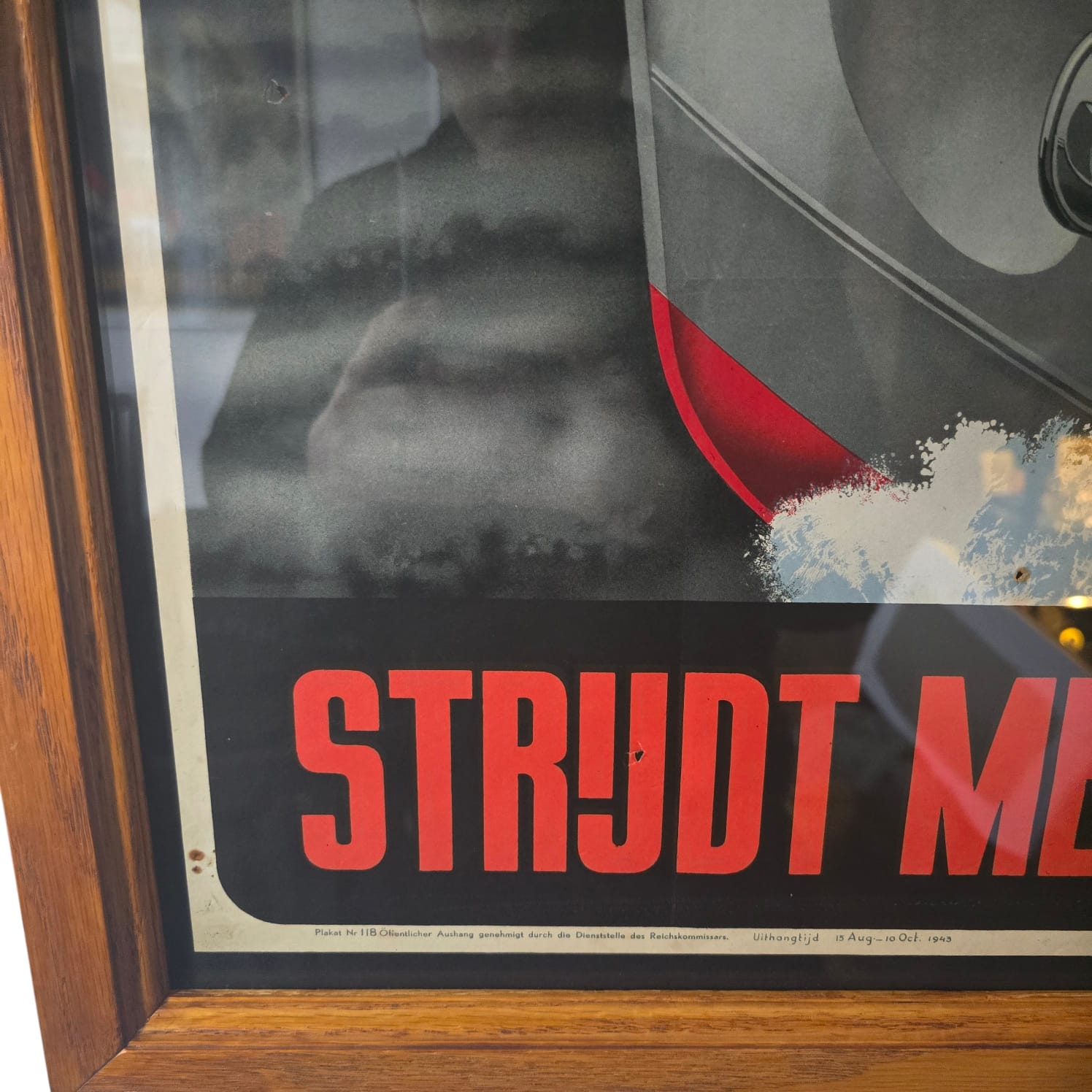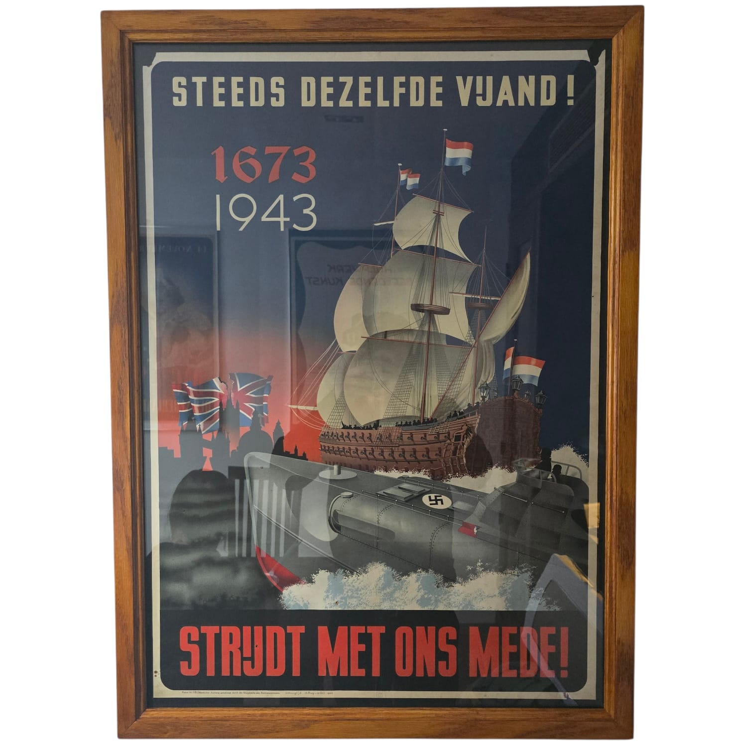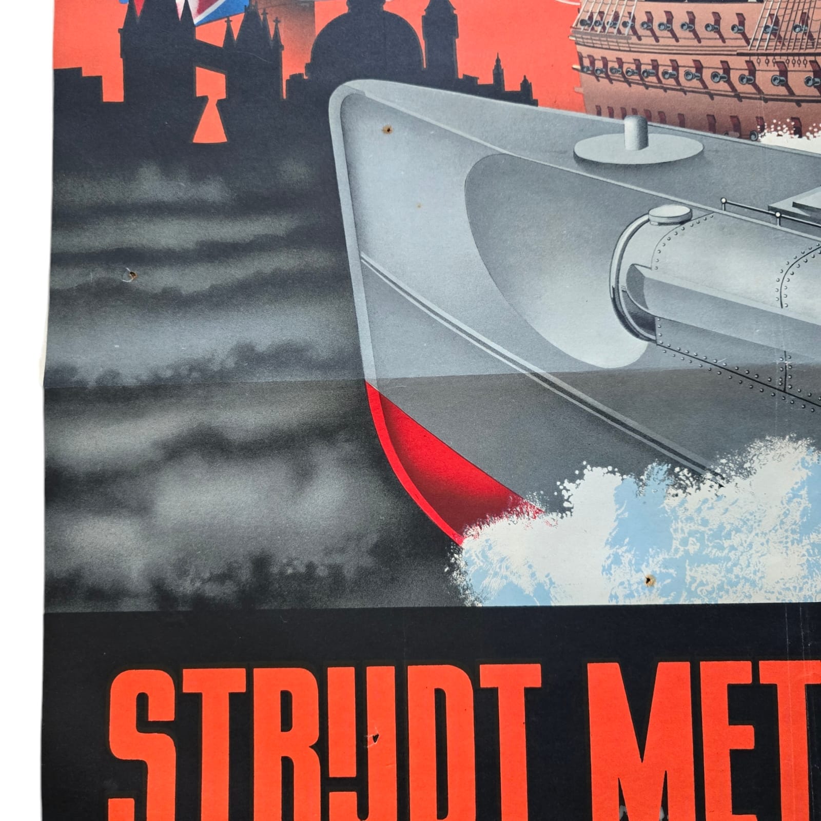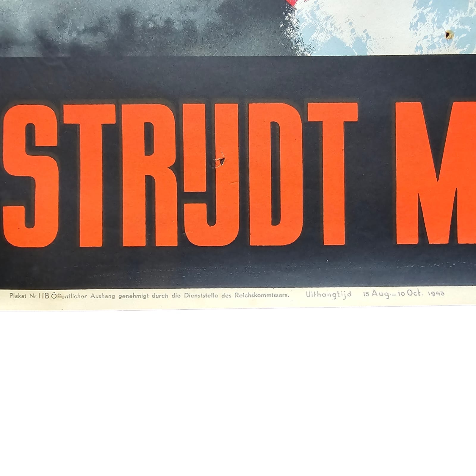 Item: De NSB-poster "Strijdt met ons mede!" is een historische propagandaposter uit de Tweede Wereldoorlog. Het was bedoeld om Nederlandse mannen te werven voor de Duitse Kriegsmarine (marine) en werd verspreid door de Nationaal-Socialistische Beweging (NSB), die samenwerkte met de Duitse bezetter.