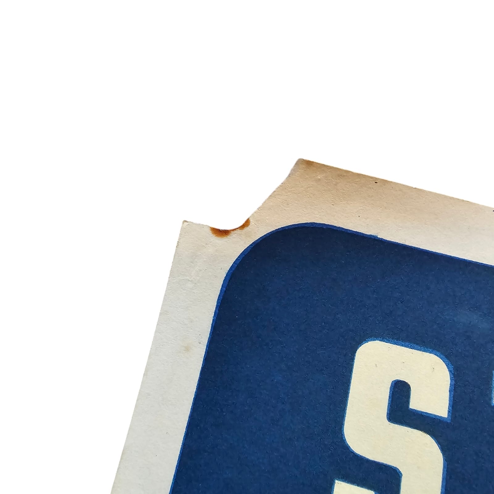 Conditie: De afmetingen zijn 81 x 57 cm. De poster is in goede staat, er missen 3 kleine stukjes papier uit de poster 2 stukjes aan de boven kant ( zie fotos ) en aan de onderkant een klein stukje ( zie fotos ). en 4 gaatjes aan op de achterzijde. juist geprijsd naar de conditie van de poster. bij de poster zit ook een speciaal gemaakt houten frame met gehard glas bij zodat je hem meteen kan ophangen