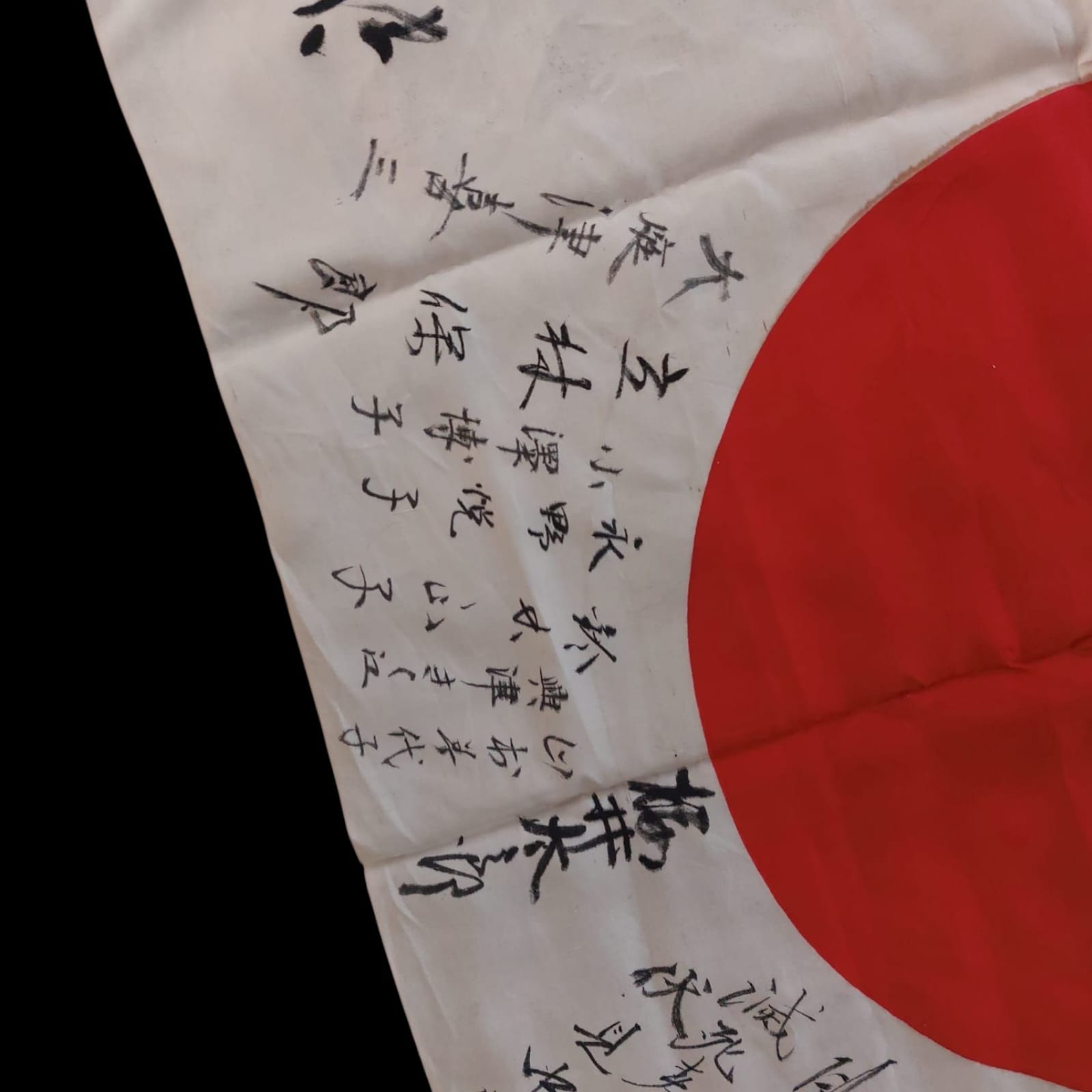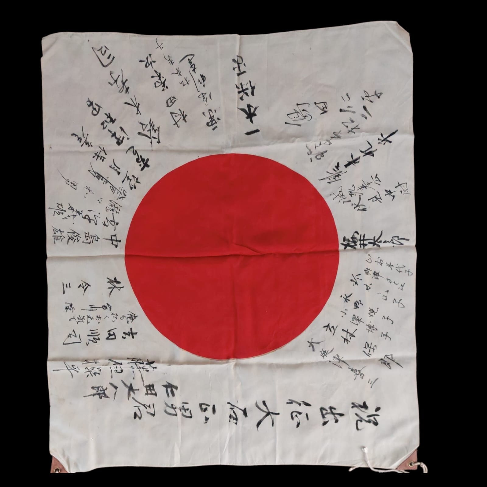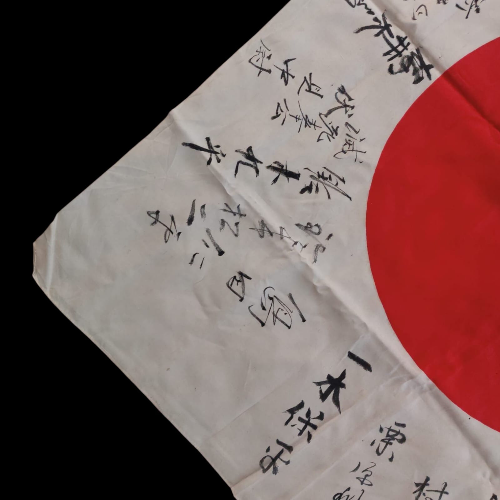 Item: The Hinomaru Yosegaki (日の丸 寄せ書き) — also known as a Japanese “Good Luck Flag” — is a unique and emotional artifact from World War II with deep cultural significance.