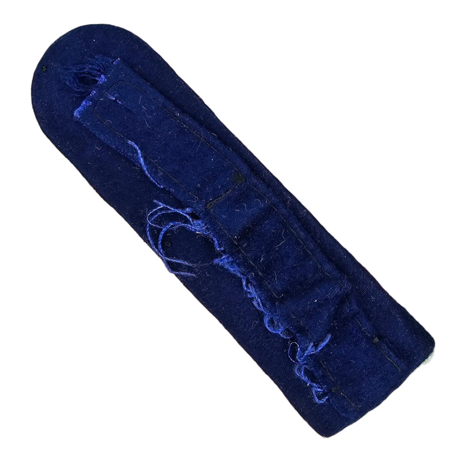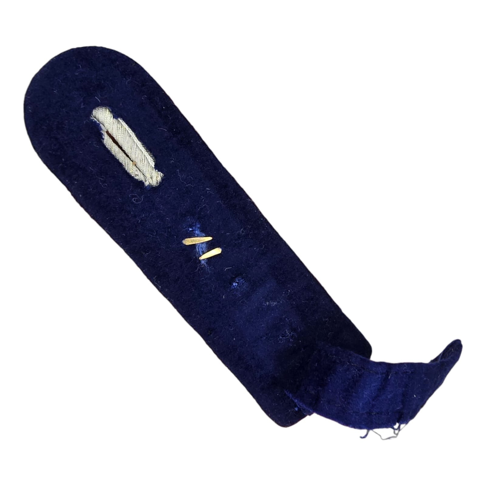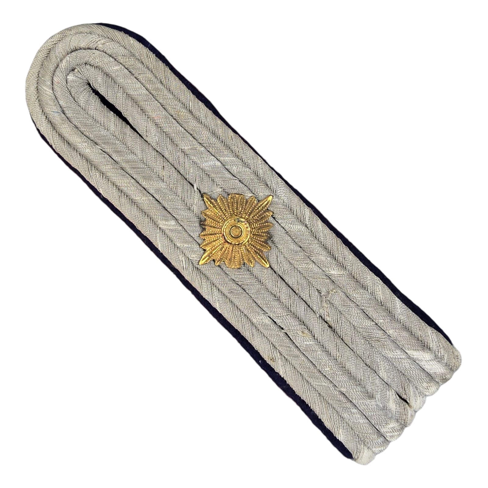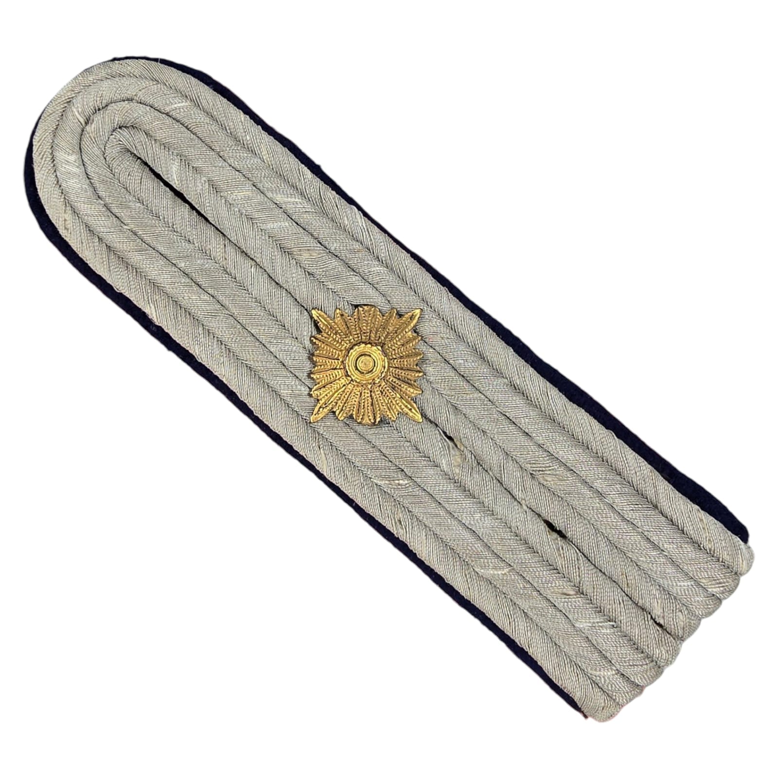 Item: Dark blue felt base with four matte grey chords arranged in a U pattern, with single rank pip. For Ober Leutenant of the medical personnel of the army