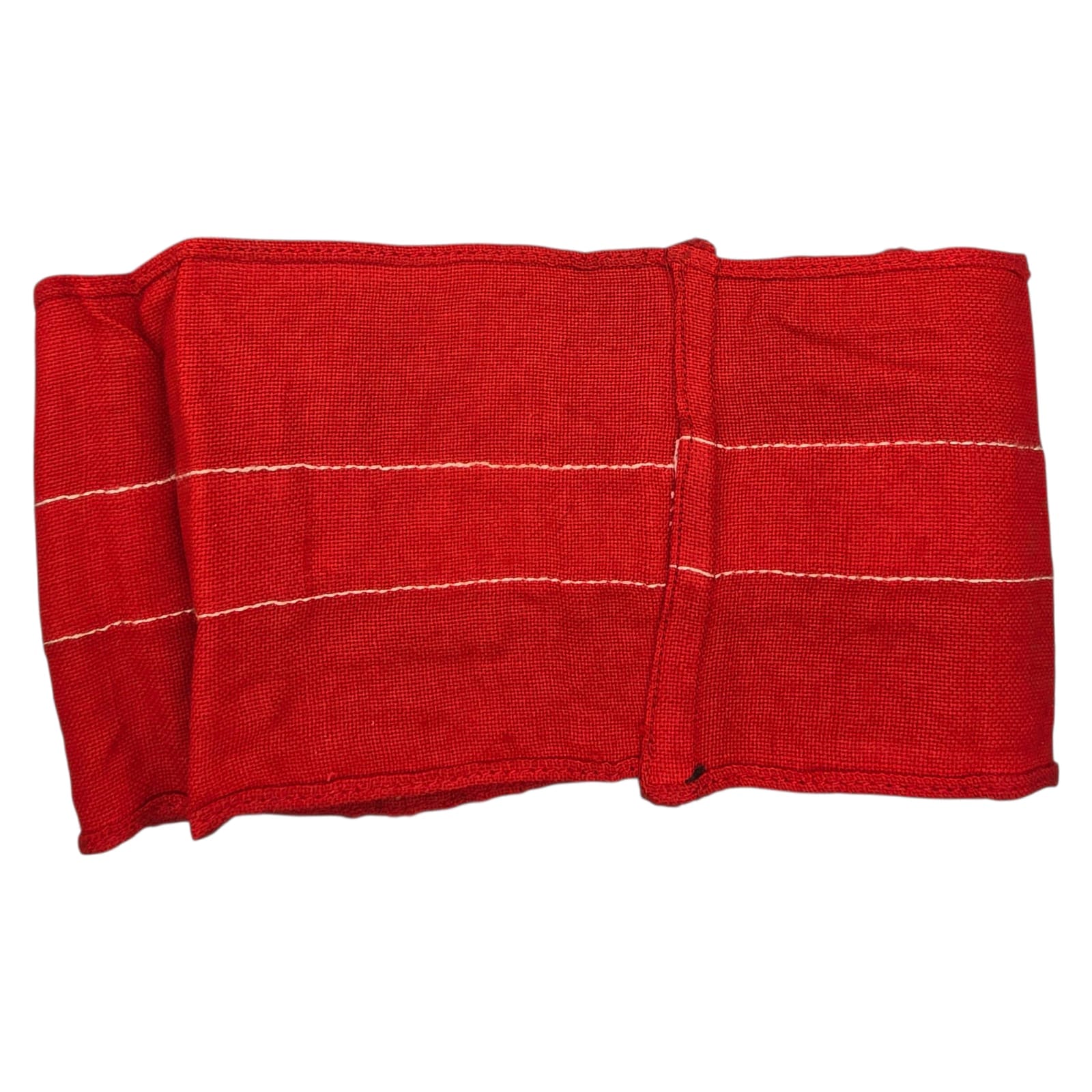 Hitler-Jugend Ledenarmband (Armbinde) zoals gedragen door HJ-leden op de linkerbovenmouw van bijna alle HJ-uniformen. De roodgekleurde armband toont een witte streep in het midden en heeft een witte ruit, met een zwarte swastika. Leuke originele armband!