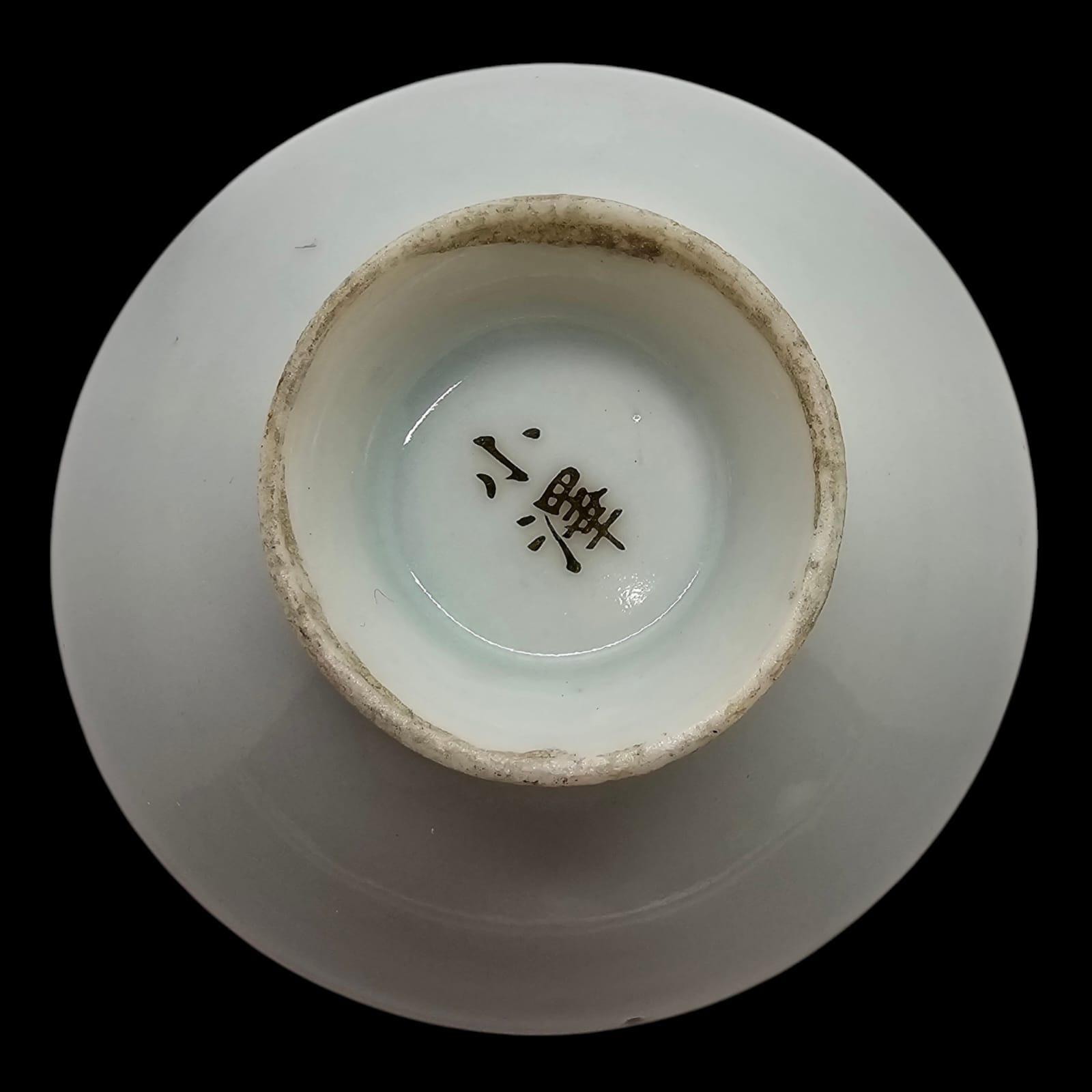 Conditie: in goede conditie alleen een stukje afgebroken van de zijkant van de cup, hele grote sake cup variant