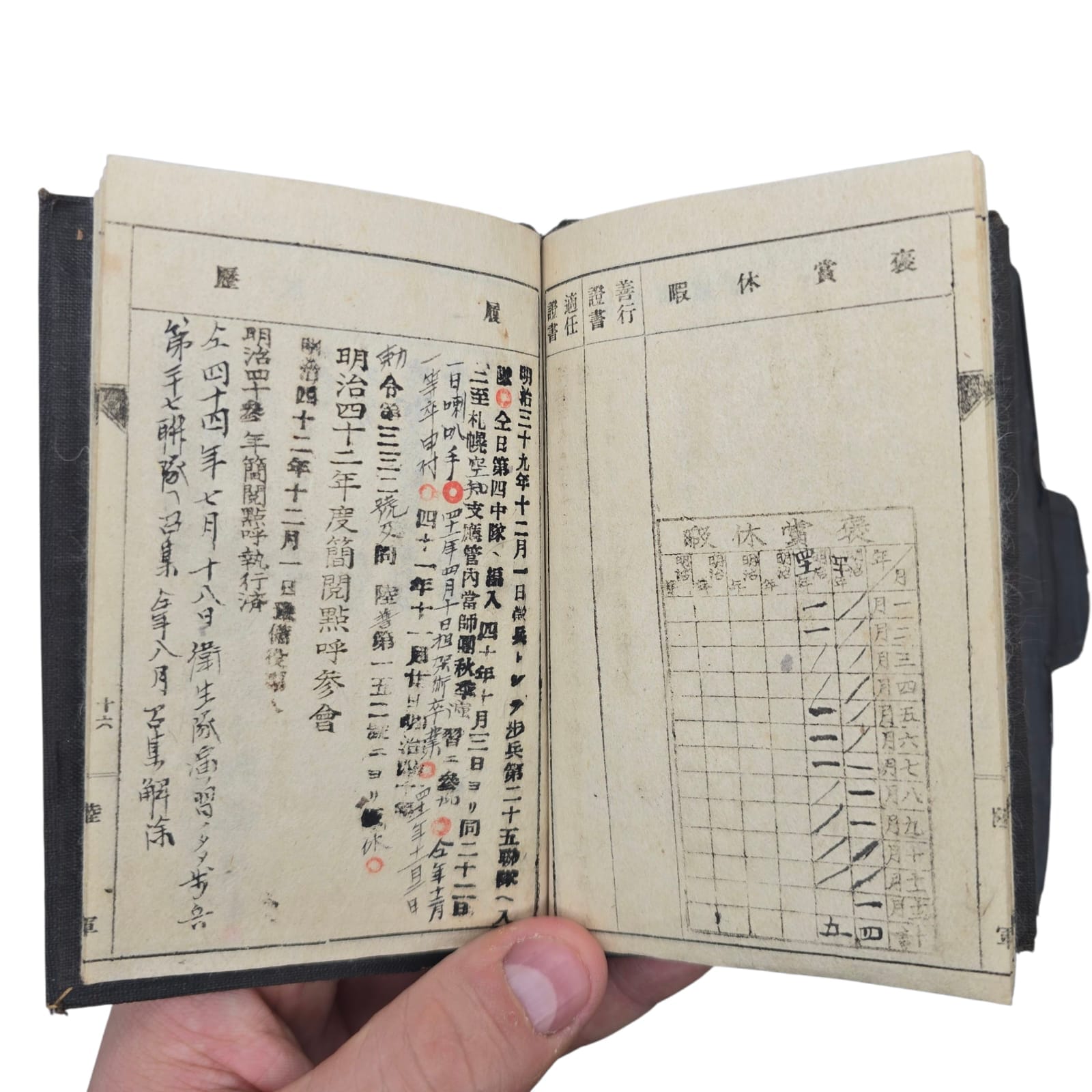 Dit soldatenboekje behoorde toe aan een veteraan van de Russisch-Japanse Oorlog uit Hokkaido, die diende in de 7e Divisie, één van de elite-eenheden van Noord-Japan. Zijn dienstgeschiedenis bevestigt inzet in Korea en Mantsjoerije, belangrijke fronten tijdens de vroege militaire expansie van Japan. Volledige en goed bewaarde Japanse dienstboekjes uit deze vroege periode zijn uiterst zeldzaam en zeer geliefd bij verzamelaars.