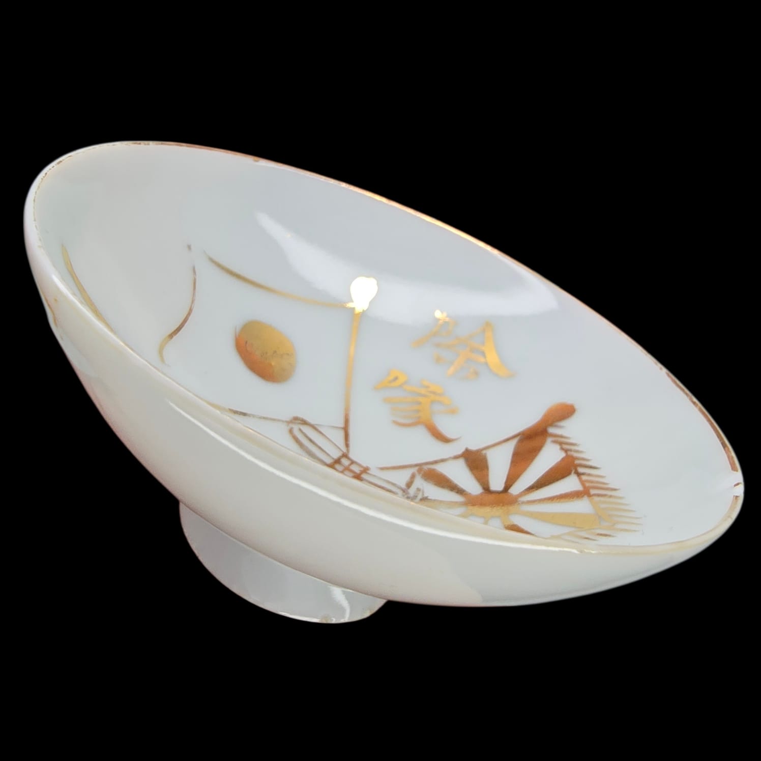 World War 2 Japanese Military Sake Cup “Golden Japanese Flags Decoractions”