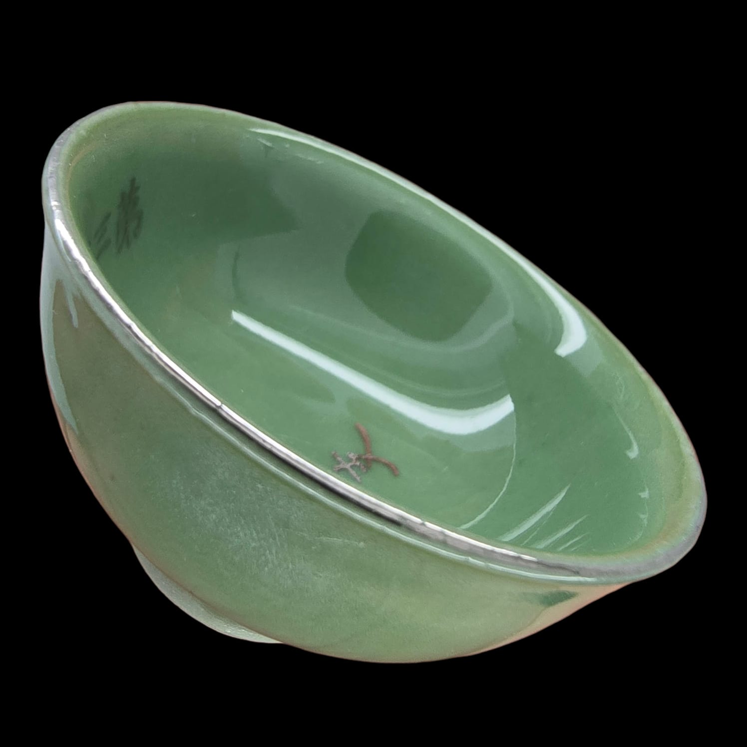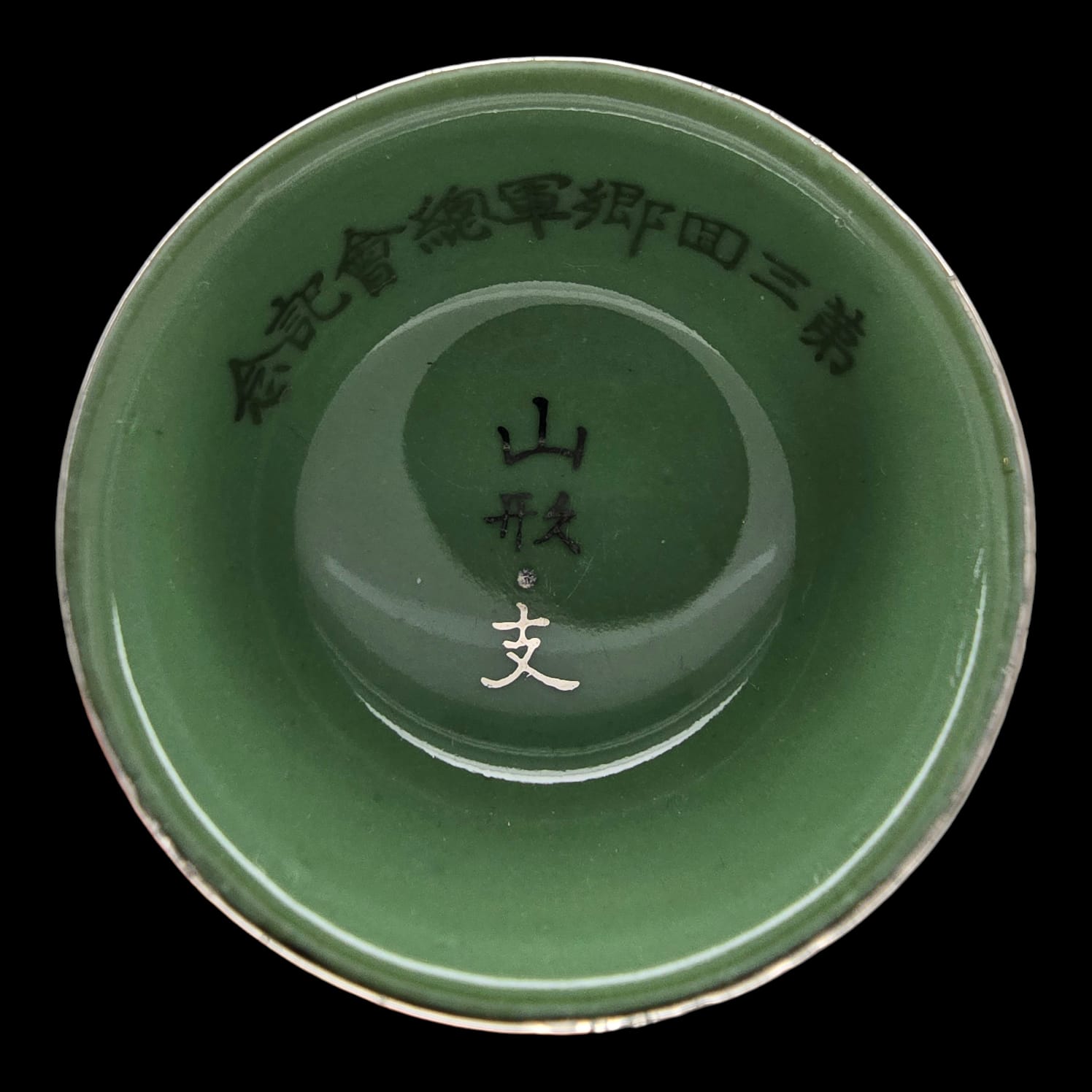 World War 2 Japanese Military Sake Cup “Green, With Gold Lettering Decoractions”