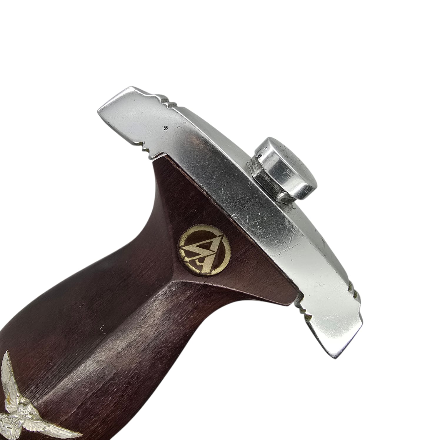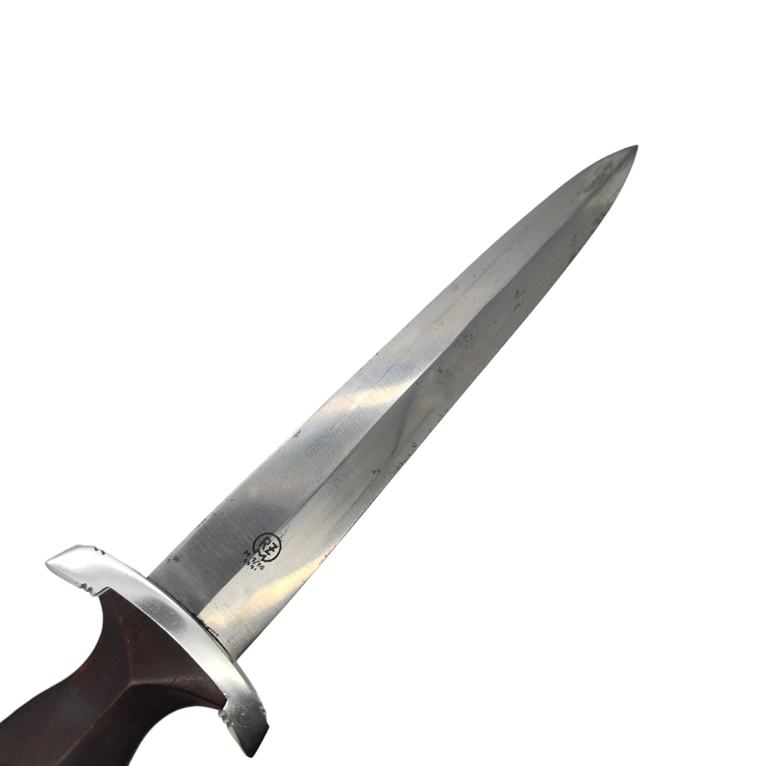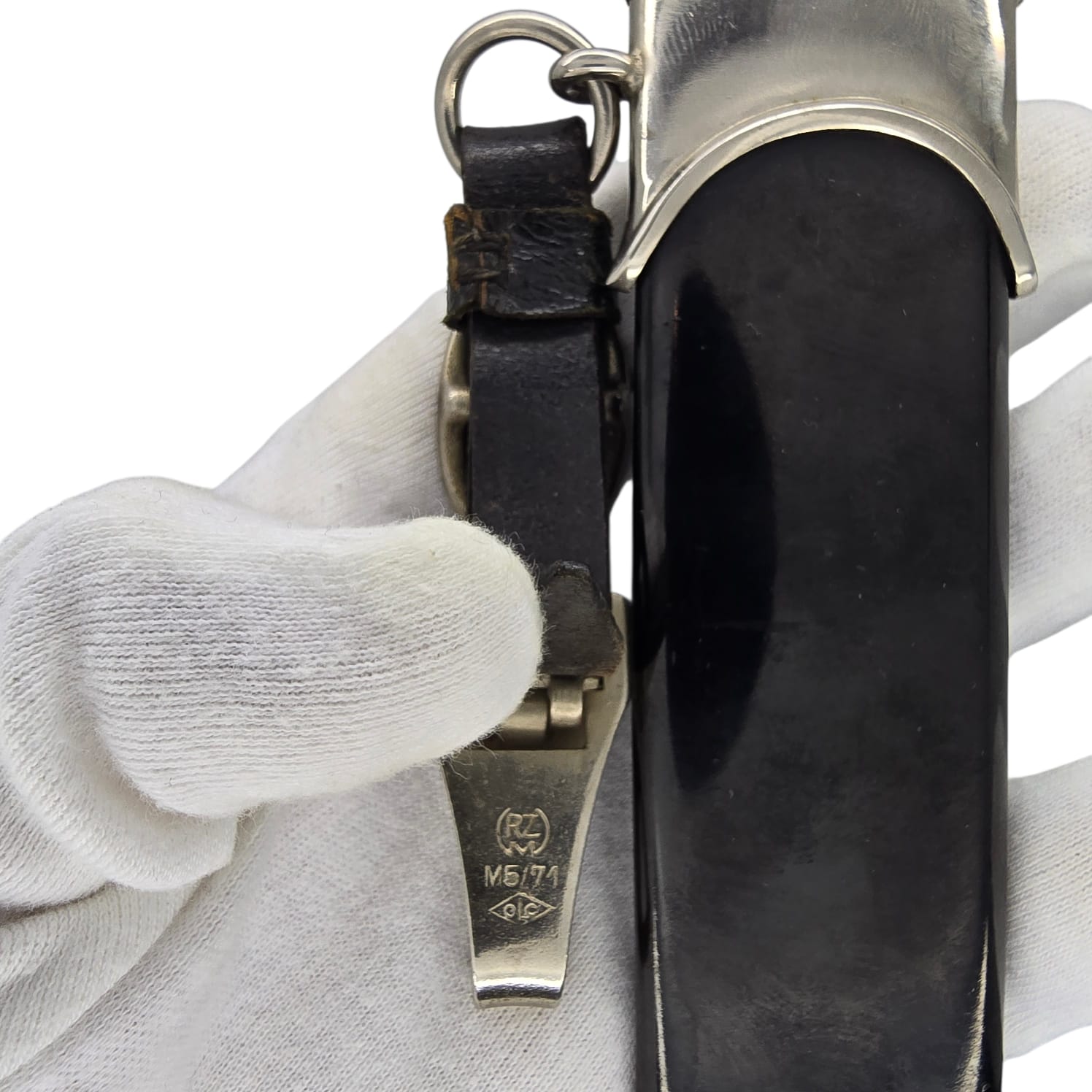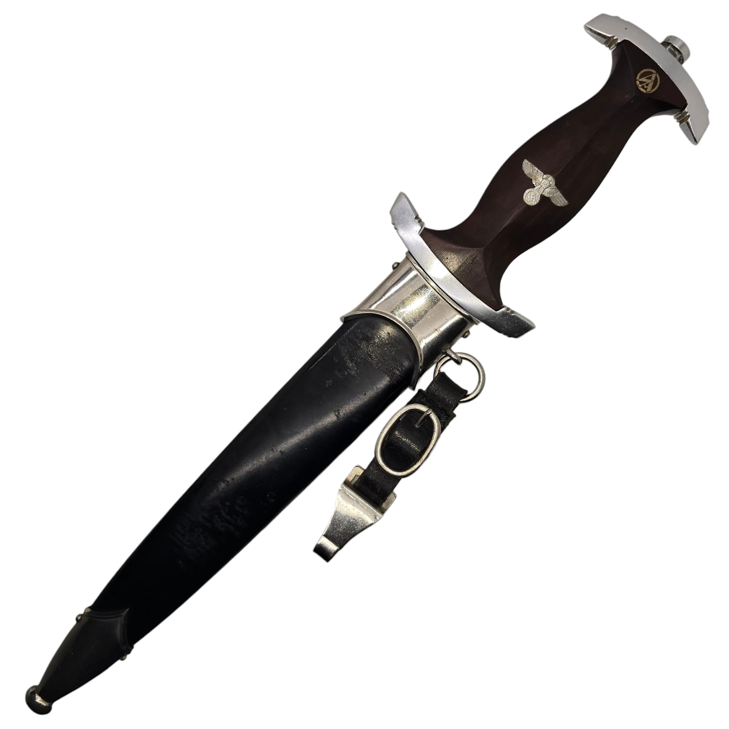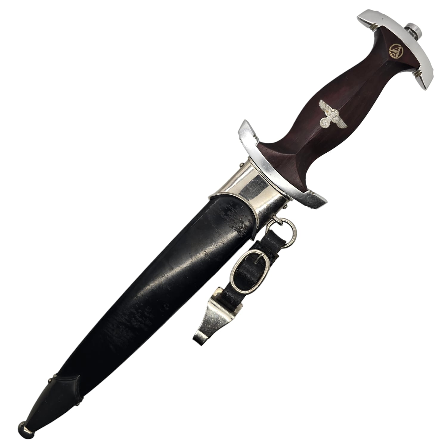 The crossguards are made of aluminum, which is very rare and is also documented in the reference book by Ralph Siegert. The eagle emblem and the wooden grip are also in good condition, appropriate for their age. The dagger is offered complete with its original RZM hanger.