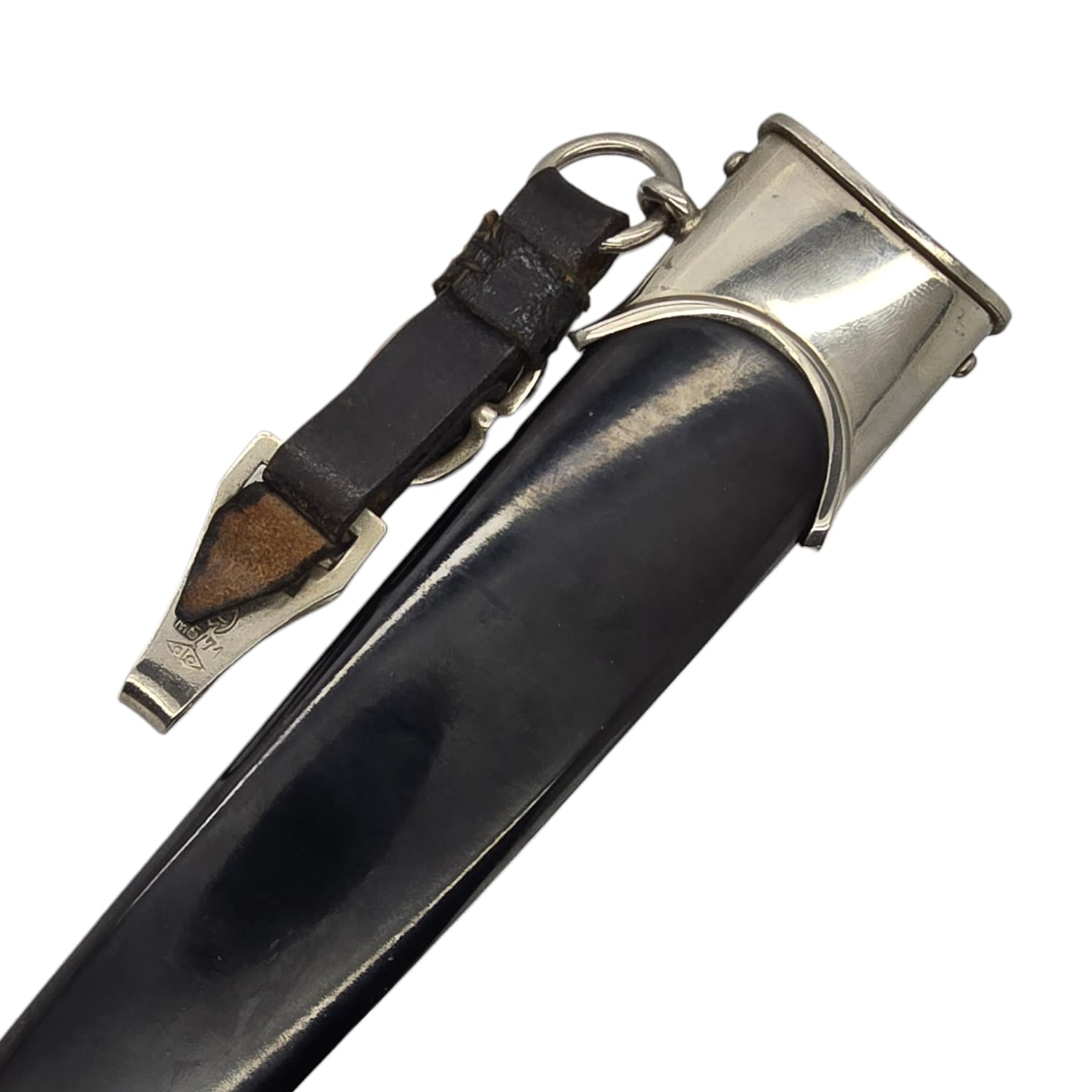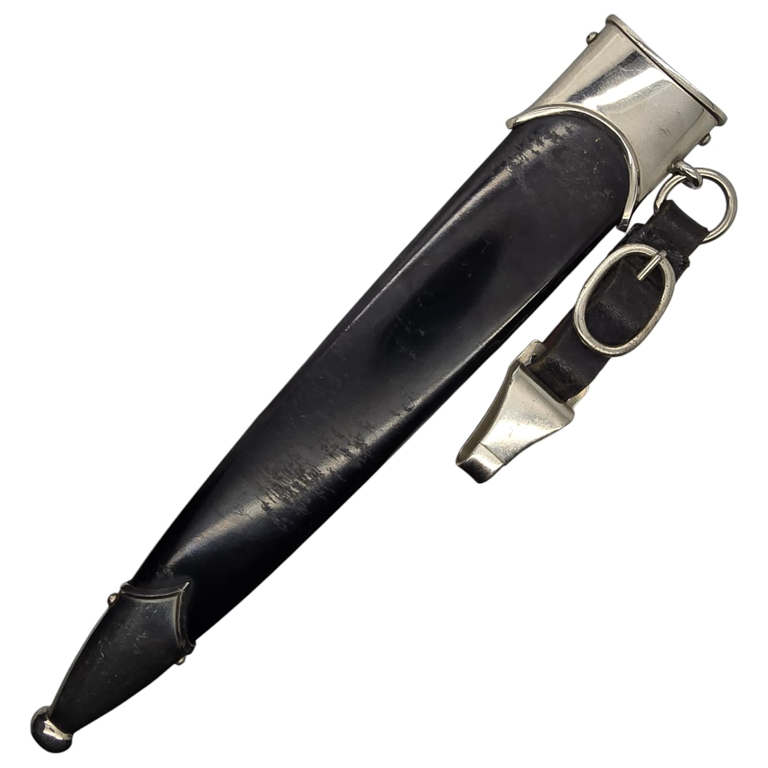 Condition: Beautiful NSKK service dagger M36, manufactured by the well-known maker Carl Eickhorn. The dagger is in good condition. The blade still shows a fine, dark motto etching and retains much of the original manufacturer’s crossgrain. The scabbard has not been repainted and is in very good condition.