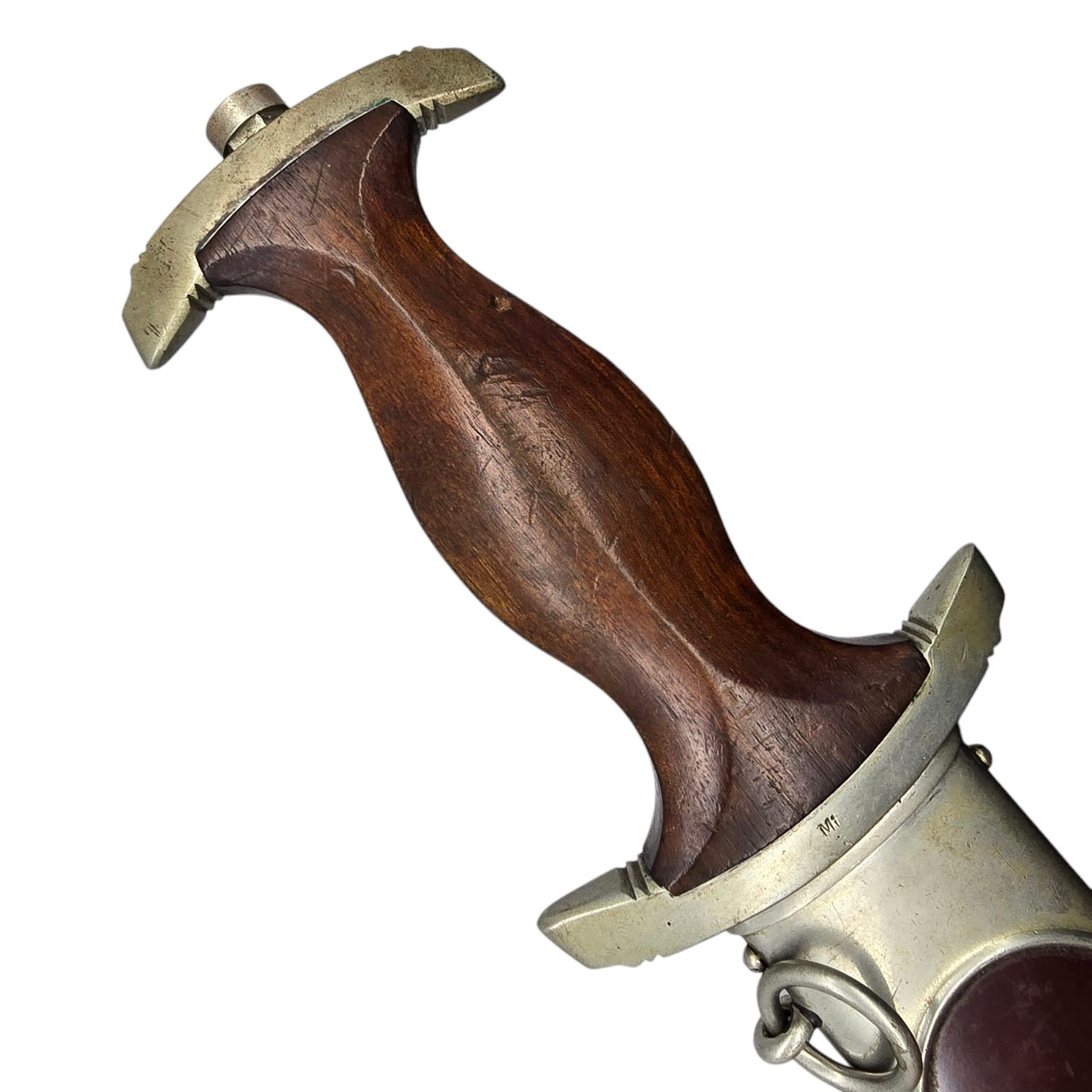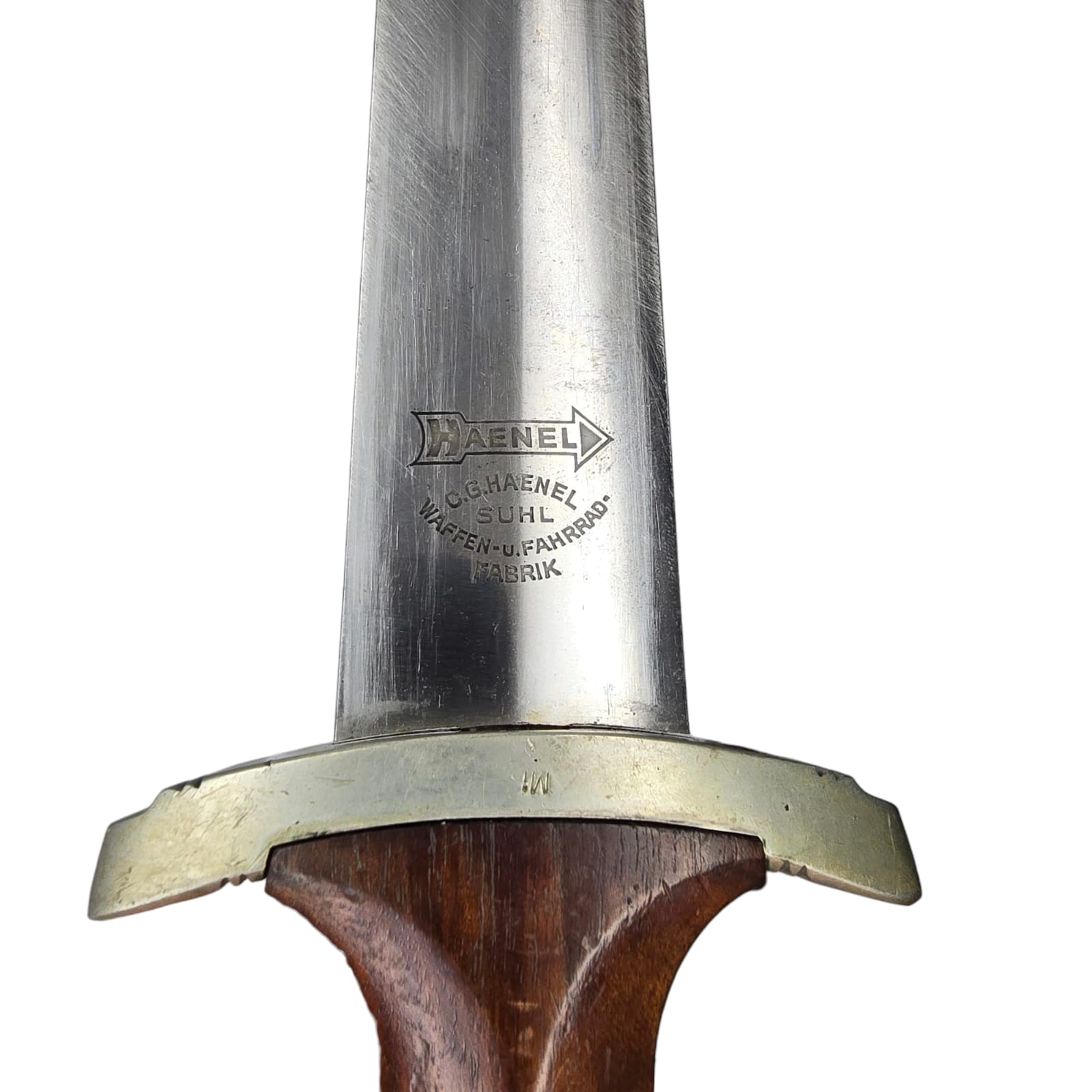 The crossguards are in the correct nickel silver version and are in good condition. The lower crossguard bears the district mark MI (representing Gruppe Mitte).
