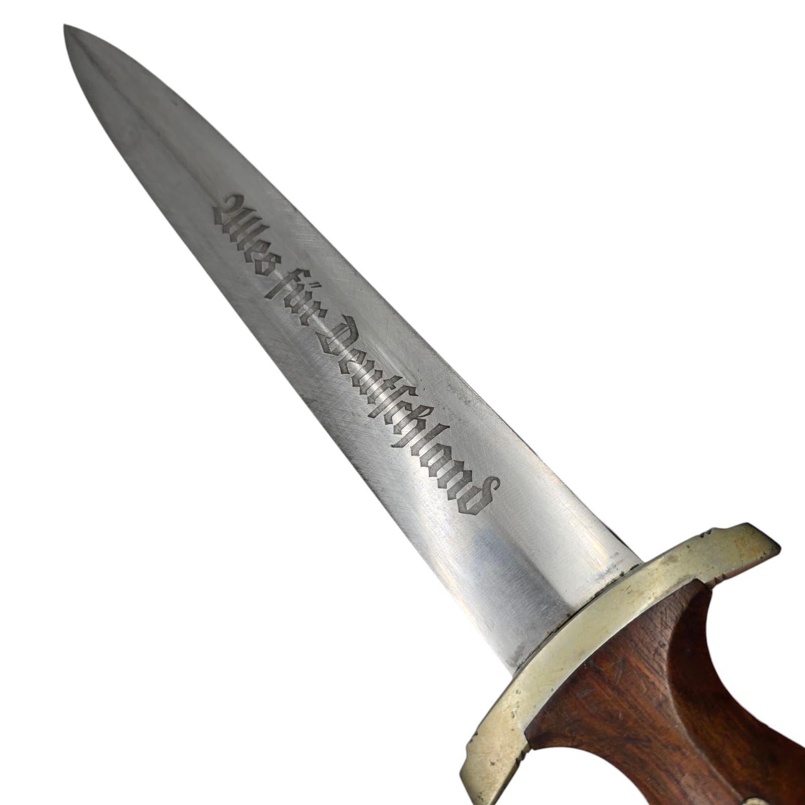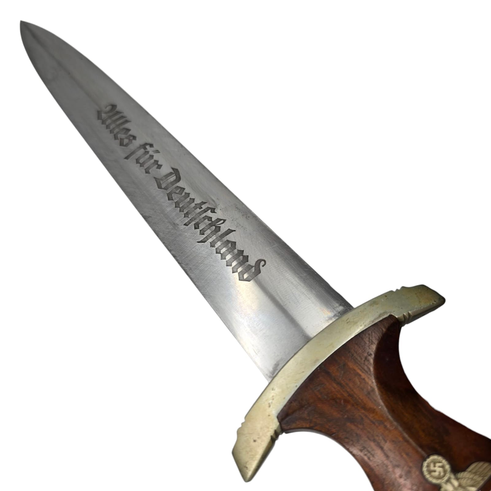 Item: The SA dagger, introduced in 1933, symbolized loyalty to the Nazi movement and was used by the Sturmabteilung (SA). It featured the motto “Alles für Deutschland” and was originally crafted with high-quality workmanship.