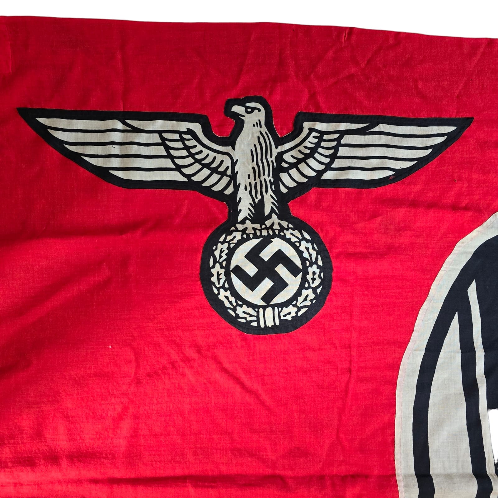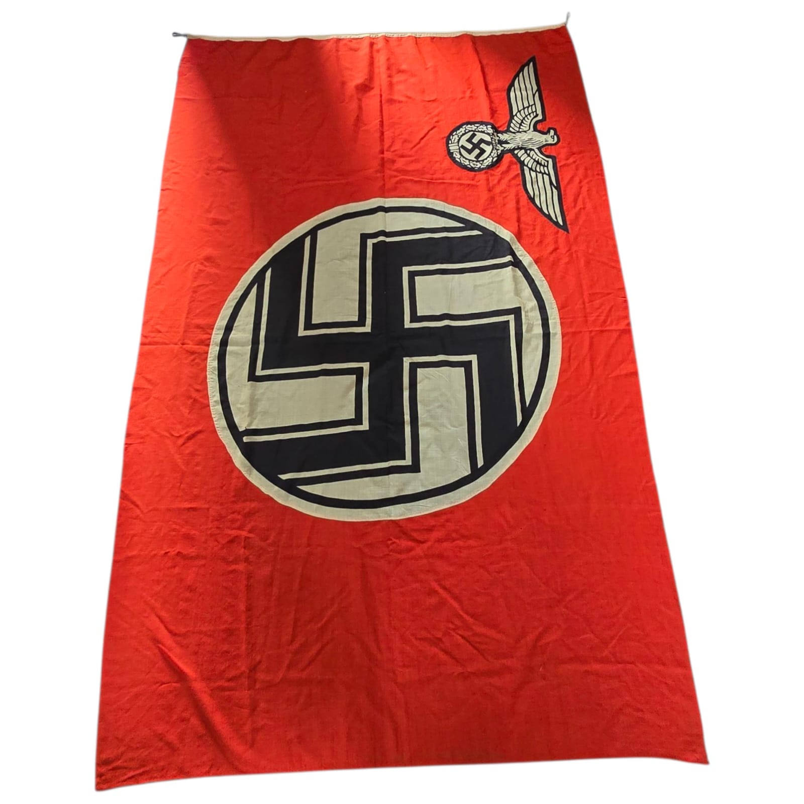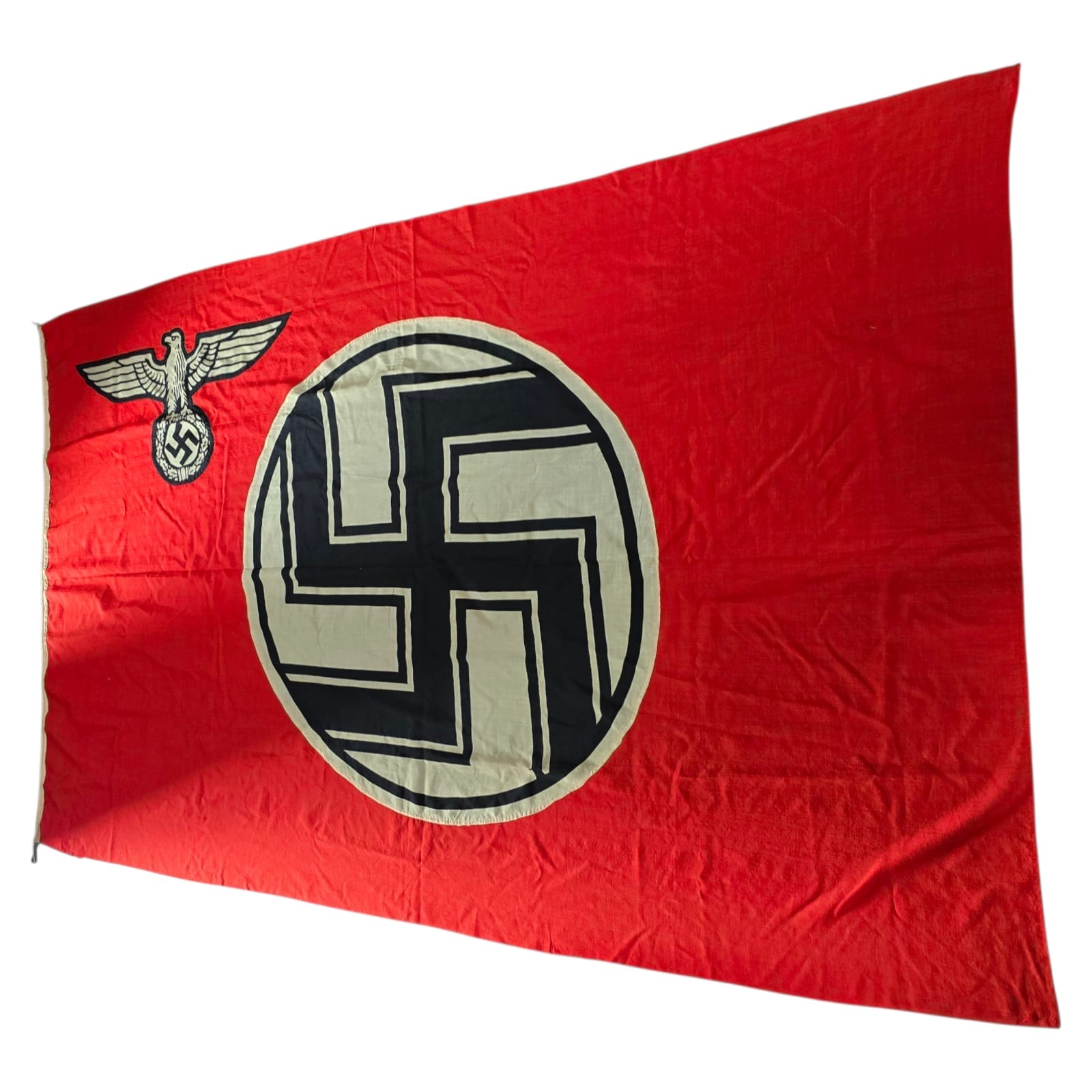 Item: The state service flag of Nazi Germany (1935–1945) was a variant of the national flag used by government offices, state institutions, and official buildings. It featured the same basic swastika design as the national flag but with additional markings (such as the eagle and wreath) to distinguish it from the versions flown by civilians or the military. It symbolized government authority and was displayed on public buildings and official facilities until the end of the Third Reich in 1945.