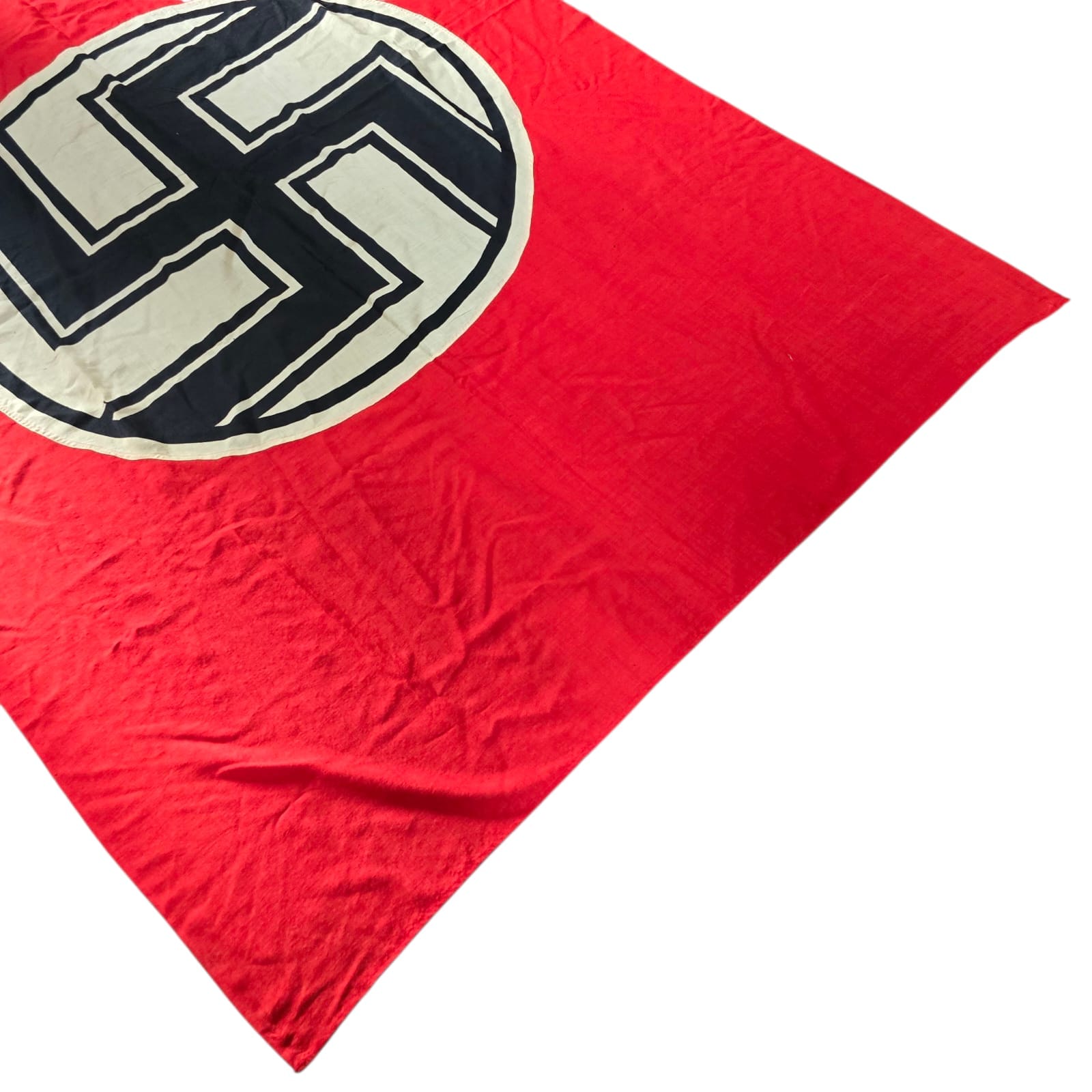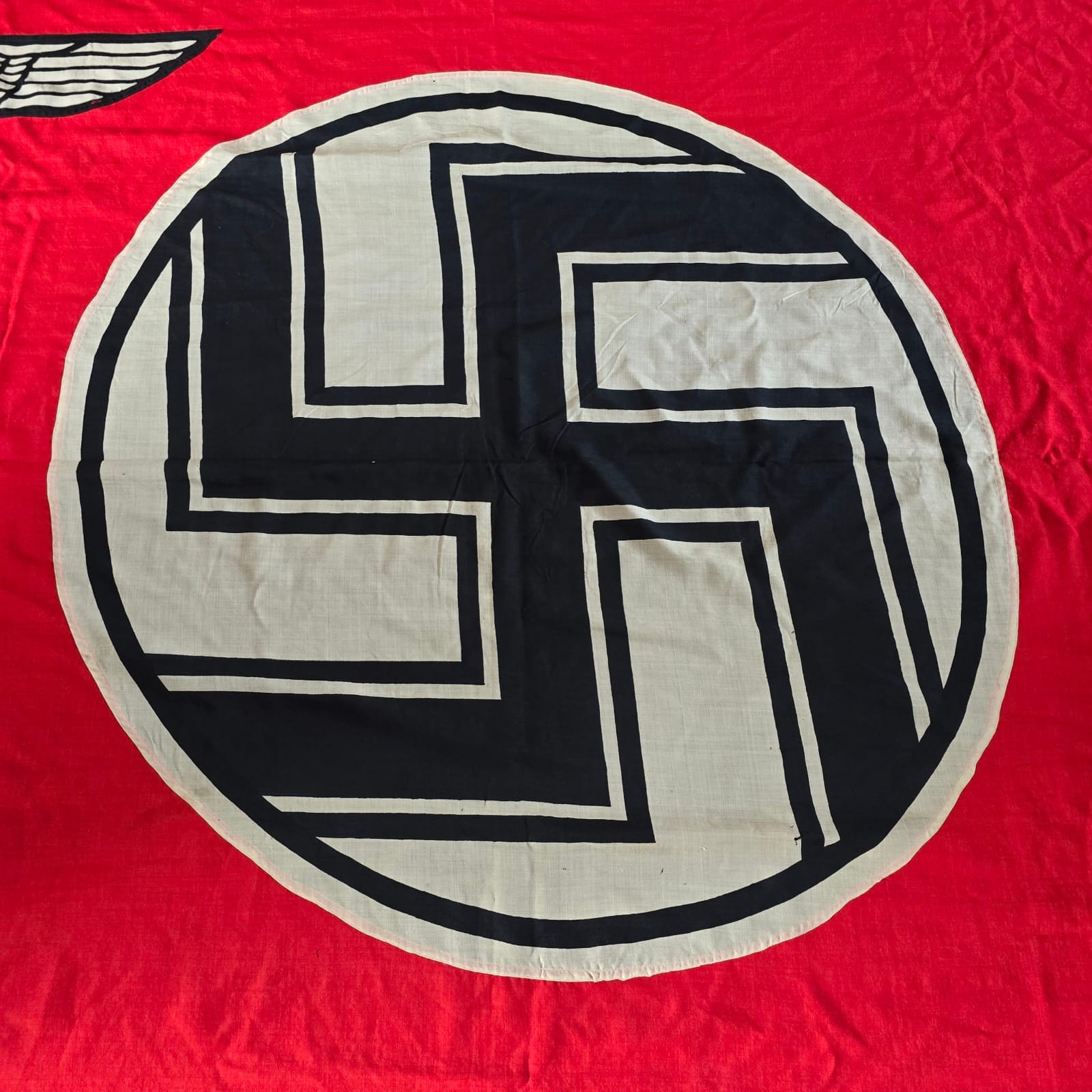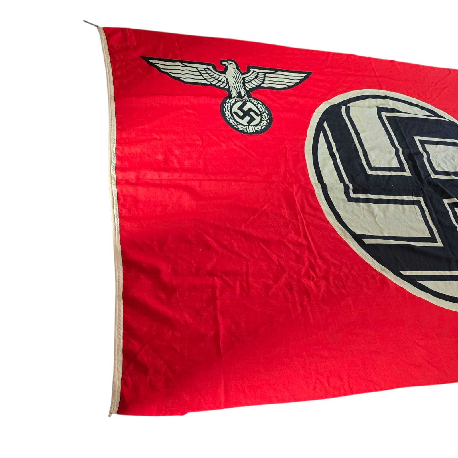 Item: The state service flag of Nazi Germany (1935–1945) was a variant of the national flag used by government offices, state institutions, and official buildings. It featured the same basic swastika design as the national flag but with additional markings (such as the eagle and wreath) to distinguish it from the versions flown by civilians or the military. It symbolized government authority and was displayed on public buildings and official facilities until the end of the Third Reich in 1945.