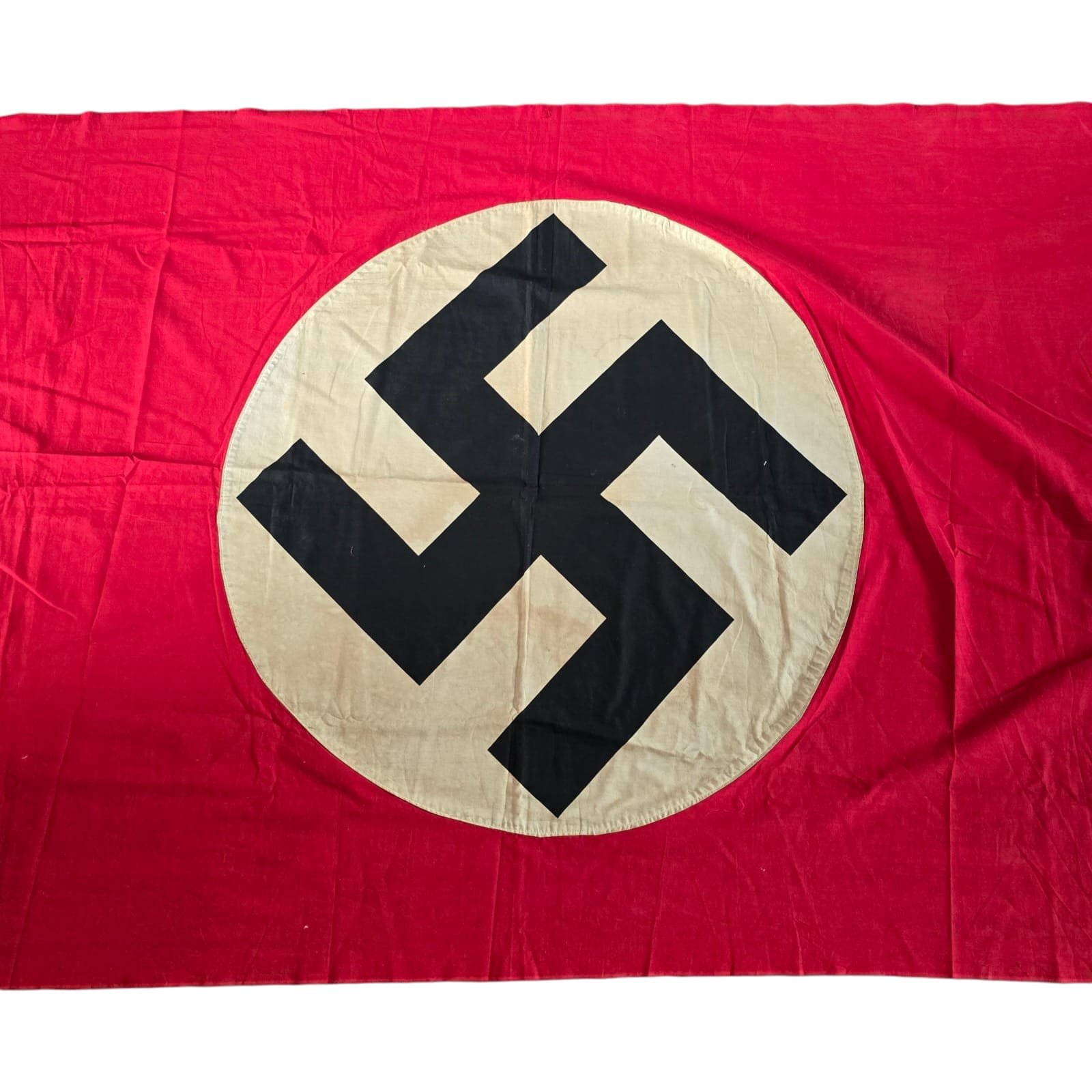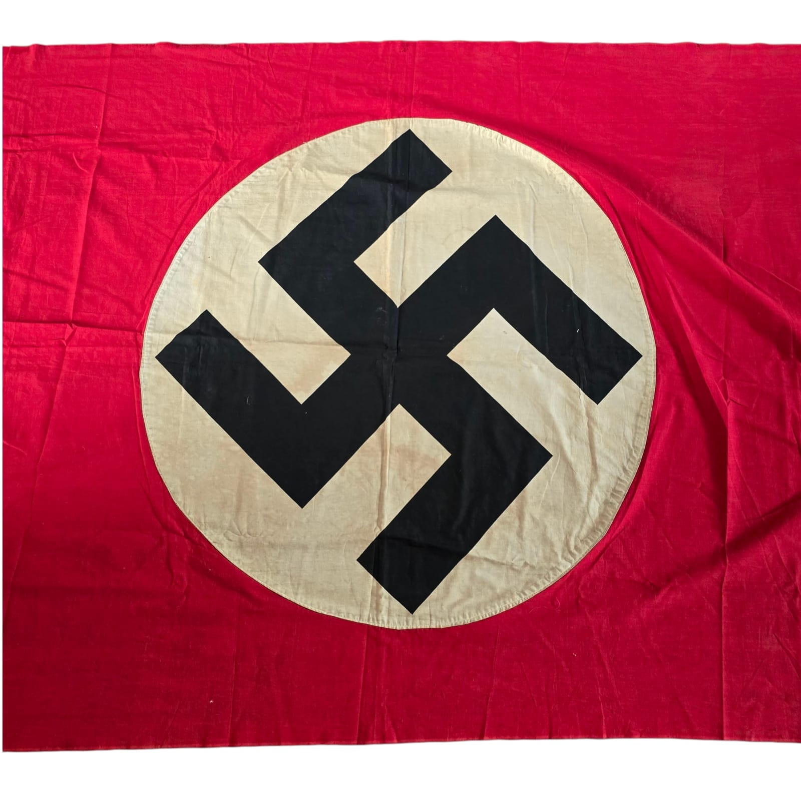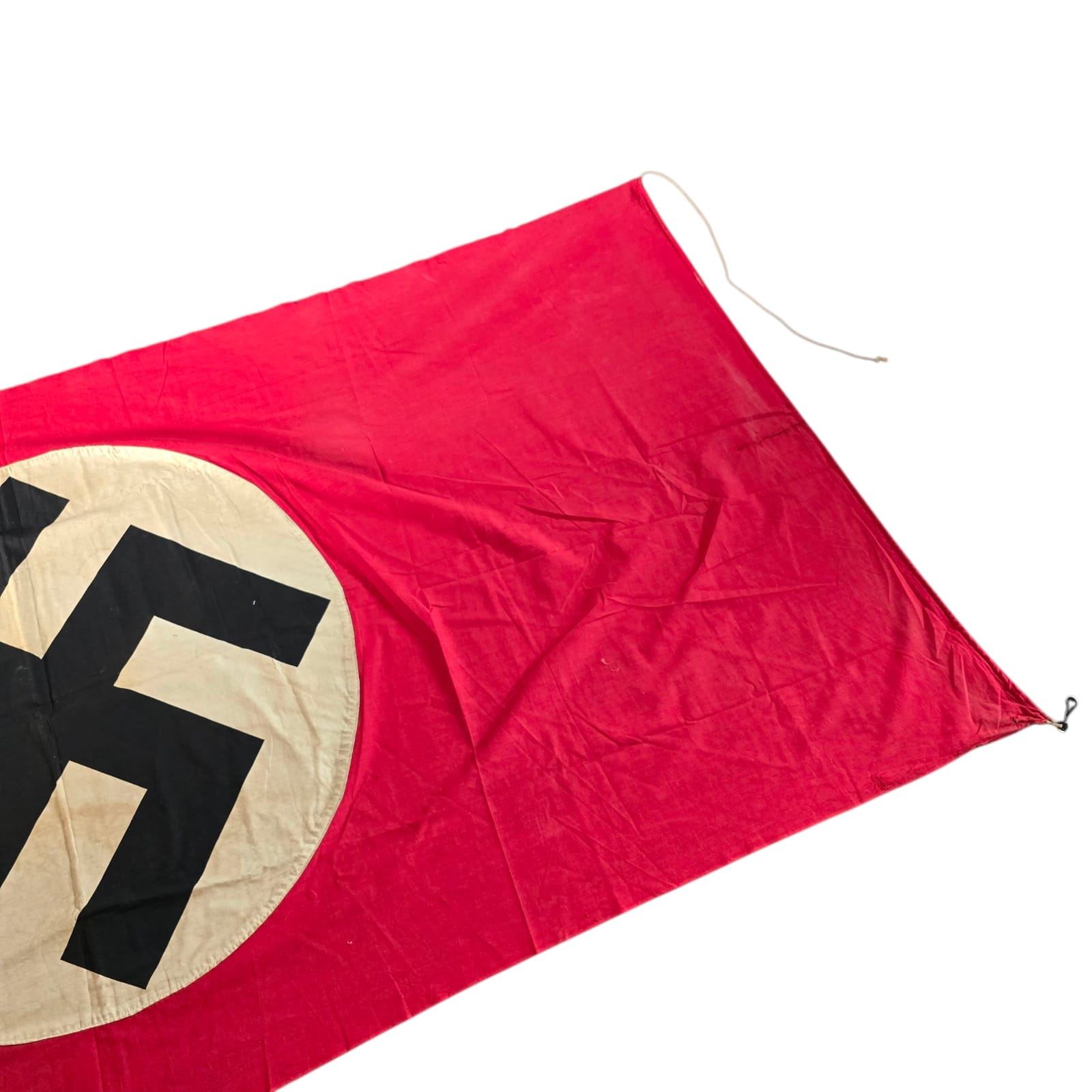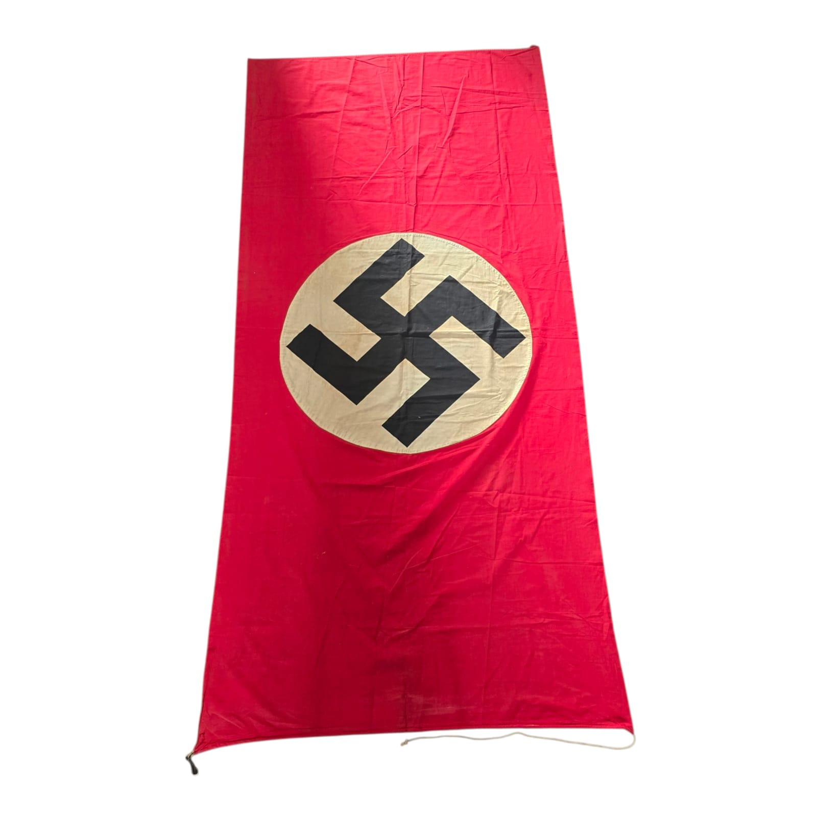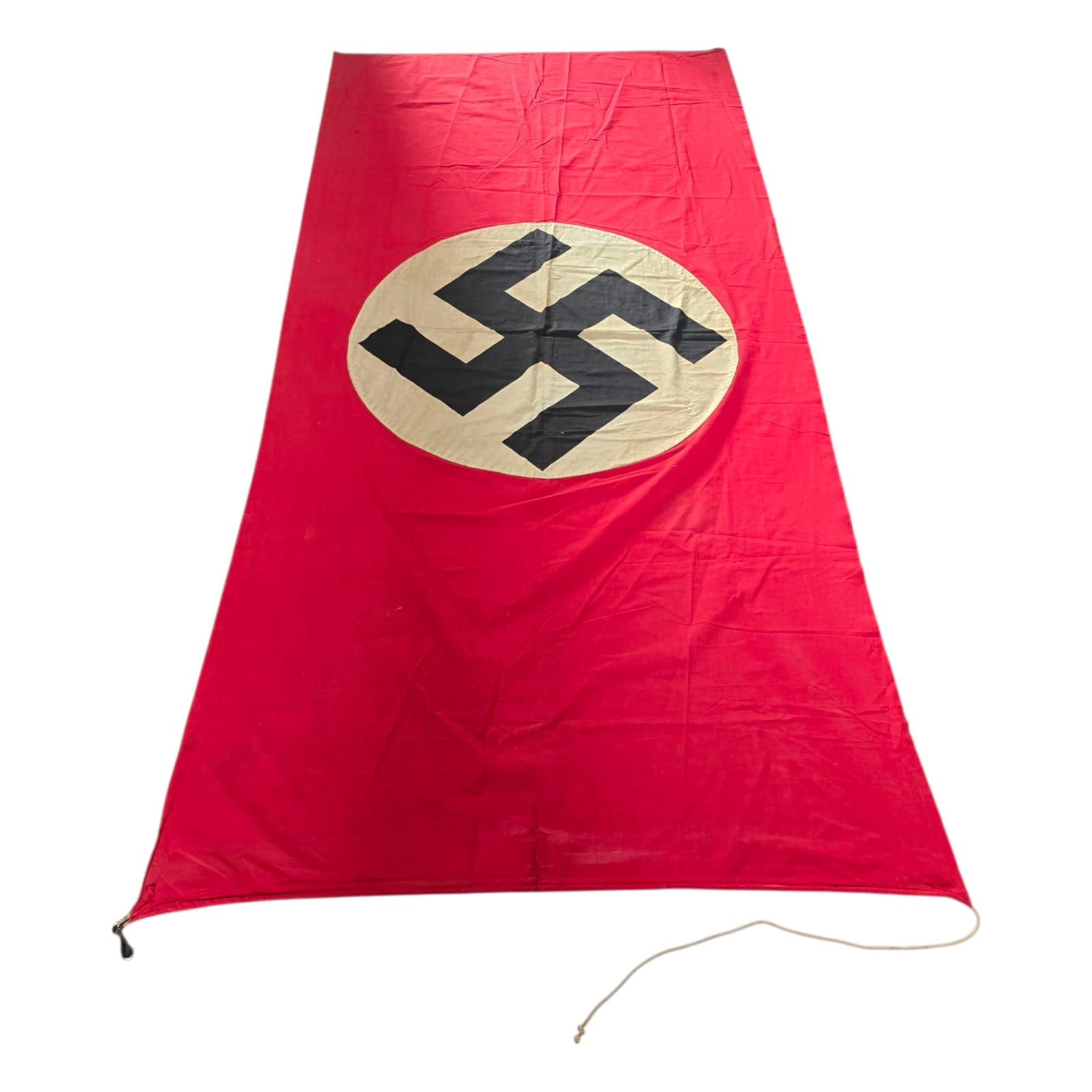 Item: In Nazi Germany, a house flag (Hausfahne) was a banner or flag displayed by private citizens, businesses, or institutions to show support for the regime, especially on official holidays, parades, or visits by leaders. These flags usually carried the swastika emblem in various forms (vertical banners, horizontal flags, or draped cloths). They were widely visible in towns and cities during the 1930s–1940s and served as a tool of propaganda, reinforcing loyalty and conformity.