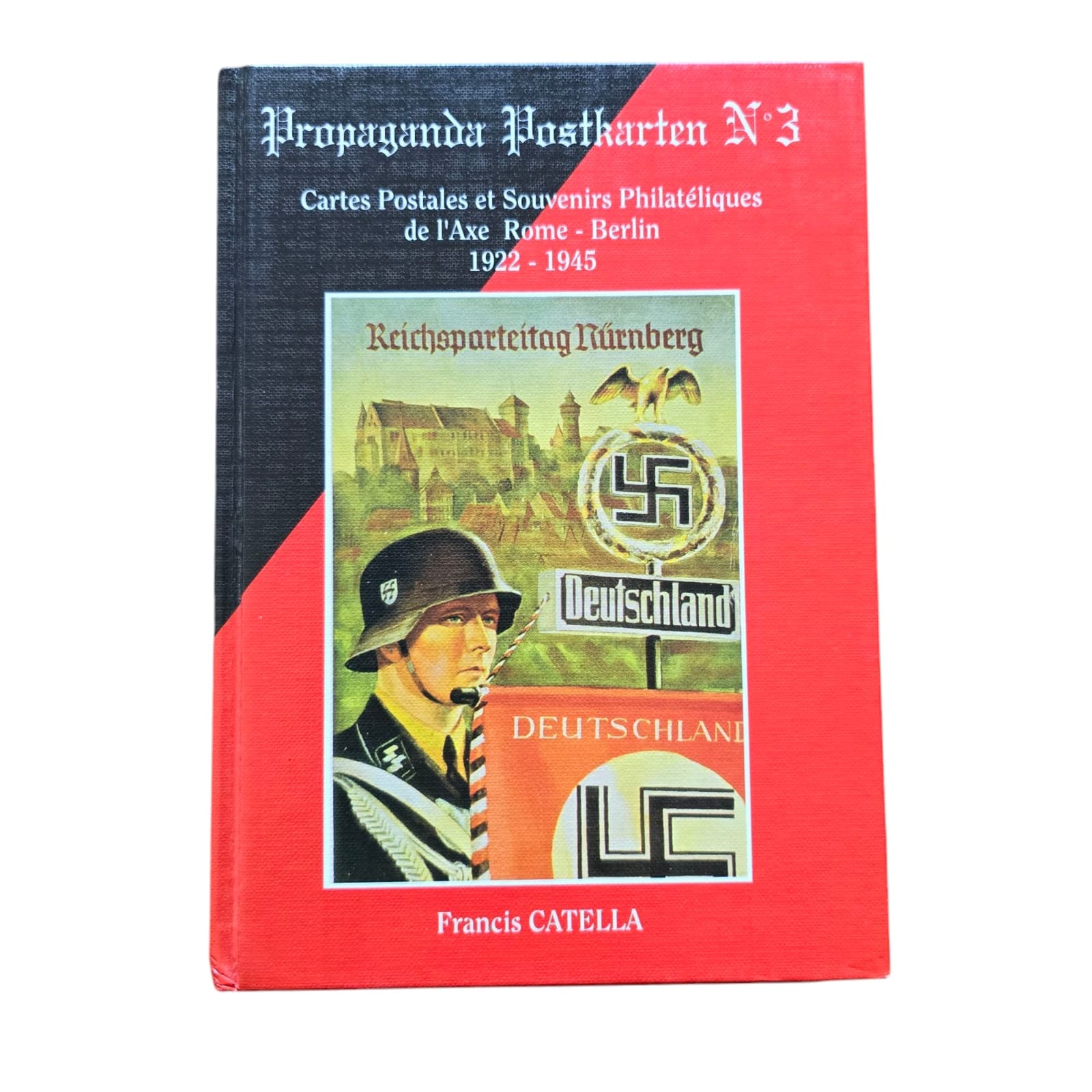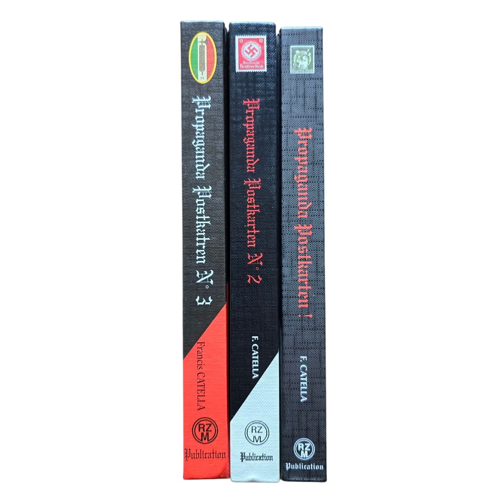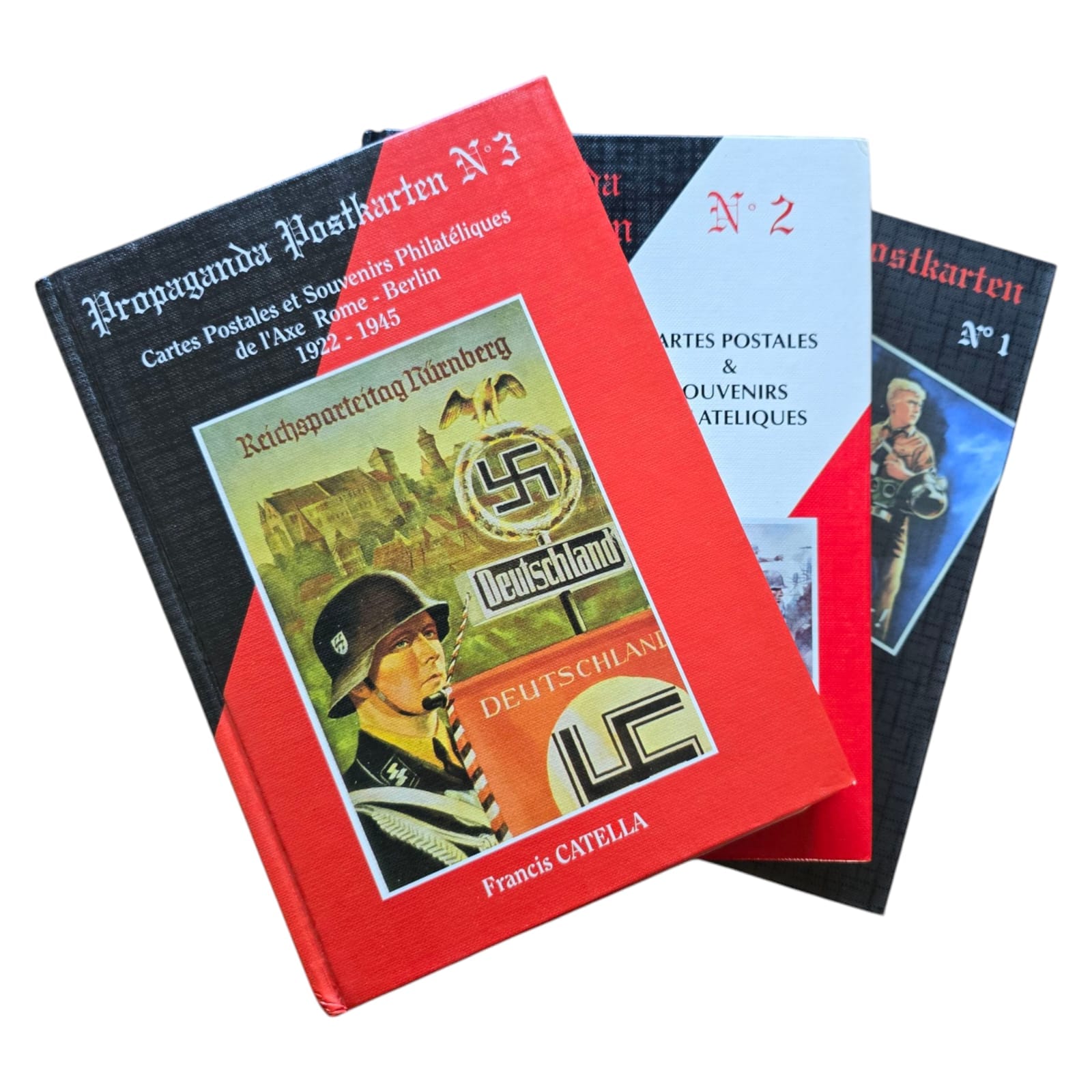 Item: De Propaganda Postkarten boeken, deel 1, 2 en 3, zijn een serie referentieboeken die zich richten op de propagandaansichtkaarten geproduceerd door Nazi-Duitsland. Deze boeken tonen een breed scala aan ansichtkaarten die voor politieke en ideologische doeleinden werden gebruikt, met afbeeldingen die nazi-waarden, nationalisme, militarisme en het leiderschap van het regime, inclusief Adolf Hitler, promootten. De ansichtkaarten werden vaak gebruikt om de prestaties van de Nazi-partij, de militaire overwinningen en de kracht van de Duitse natie te verheerlijken. Elk volume bevat meestal gedetailleerde afbeeldingen van de ansichtkaarten, hun ontwerpen en de boodschappen die ze overbrachten, wat een visuele geschiedenis van Nazi-propaganda via dit medium biedt. Deze boeken zijn waardevol voor verzamelaars, historici en onderzoekers die geïnteresseerd zijn in de rol van propaganda in Nazi-Duitsland en de impact van visuele communicatie in die tijd.