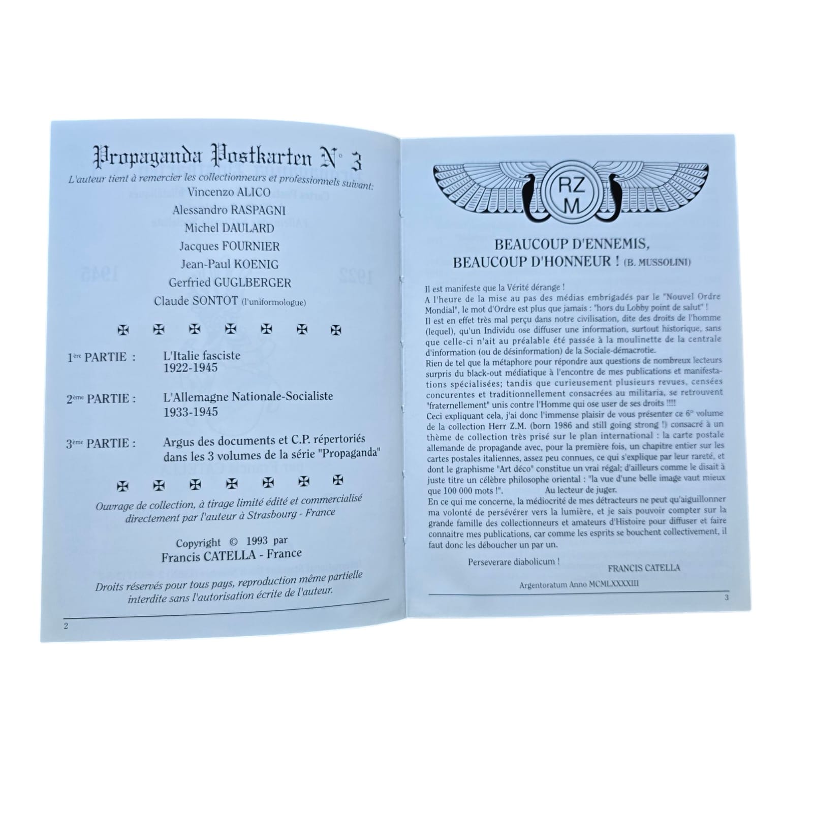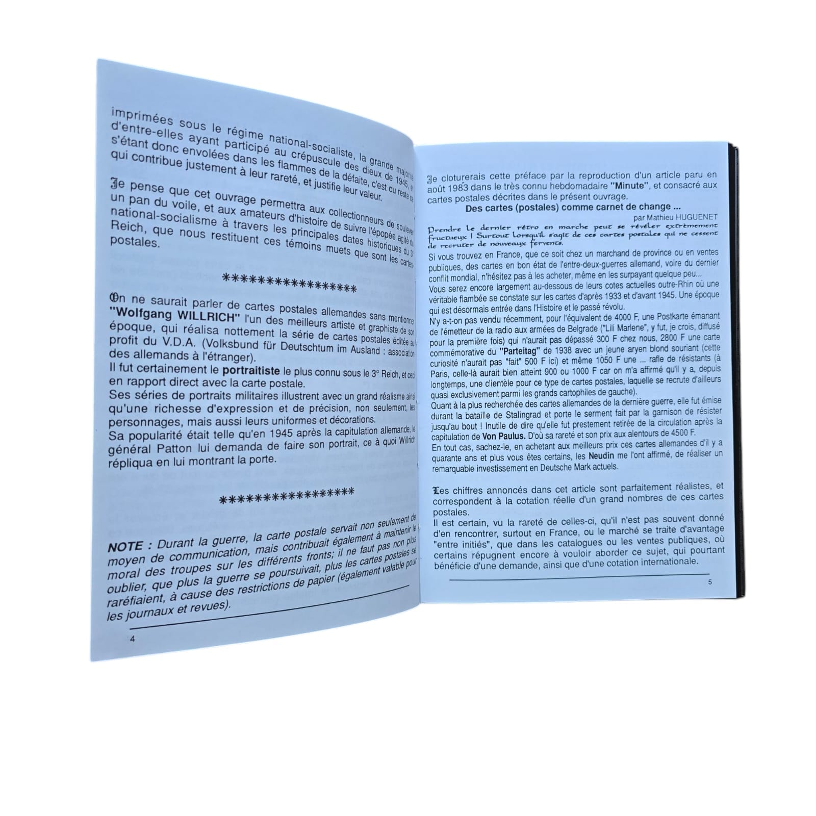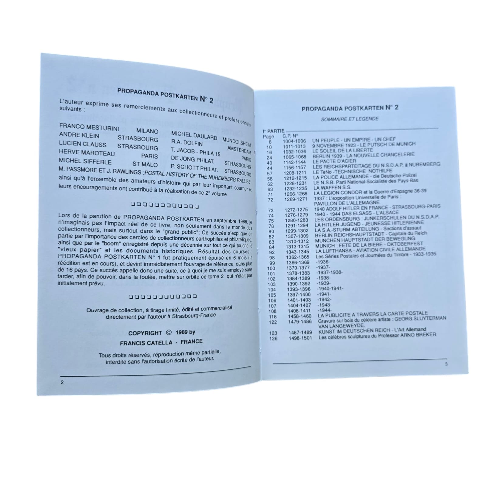 Item: De Propaganda Postkarten boeken, deel 1, 2 en 3, zijn een serie referentieboeken die zich richten op de propagandaansichtkaarten geproduceerd door Nazi-Duitsland. Deze boeken tonen een breed scala aan ansichtkaarten die voor politieke en ideologische doeleinden werden gebruikt, met afbeeldingen die nazi-waarden, nationalisme, militarisme en het leiderschap van het regime, inclusief Adolf Hitler, promootten. De ansichtkaarten werden vaak gebruikt om de prestaties van de Nazi-partij, de militaire overwinningen en de kracht van de Duitse natie te verheerlijken. Elk volume bevat meestal gedetailleerde afbeeldingen van de ansichtkaarten, hun ontwerpen en de boodschappen die ze overbrachten, wat een visuele geschiedenis van Nazi-propaganda via dit medium biedt. Deze boeken zijn waardevol voor verzamelaars, historici en onderzoekers die geïnteresseerd zijn in de rol van propaganda in Nazi-Duitsland en de impact van visuele communicatie in die tijd.