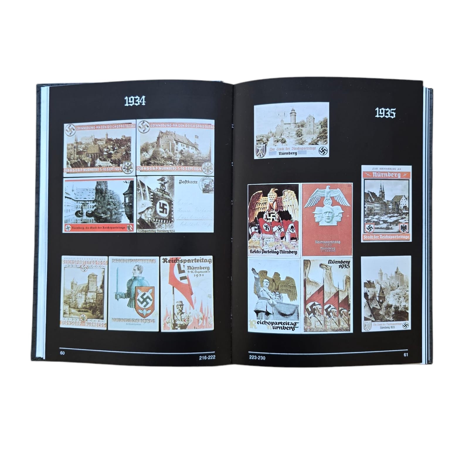 Item: The Propaganda Postkarten books, Part 1, 2, and 3, are a series of reference books that focus on the propaganda postcards produced by Nazi Germany. These books showcase a wide variety of postcards used for political and ideological purposes, featuring imagery that promoted Nazi values, nationalism, militarism, and the regime’s leadership, including Adolf Hitler. The postcards were often used to glorify the achievements of the Nazi Party, its military victories, and the strength of the German nation. Each volume typically includes detailed images of the postcards, their designs, and the messages they conveyed, providing a visual history of Nazi propaganda through this medium. These books are valuable for collectors, historians, and researchers interested in the role of propaganda in Nazi Germany and the impact of visual communication during that time.
