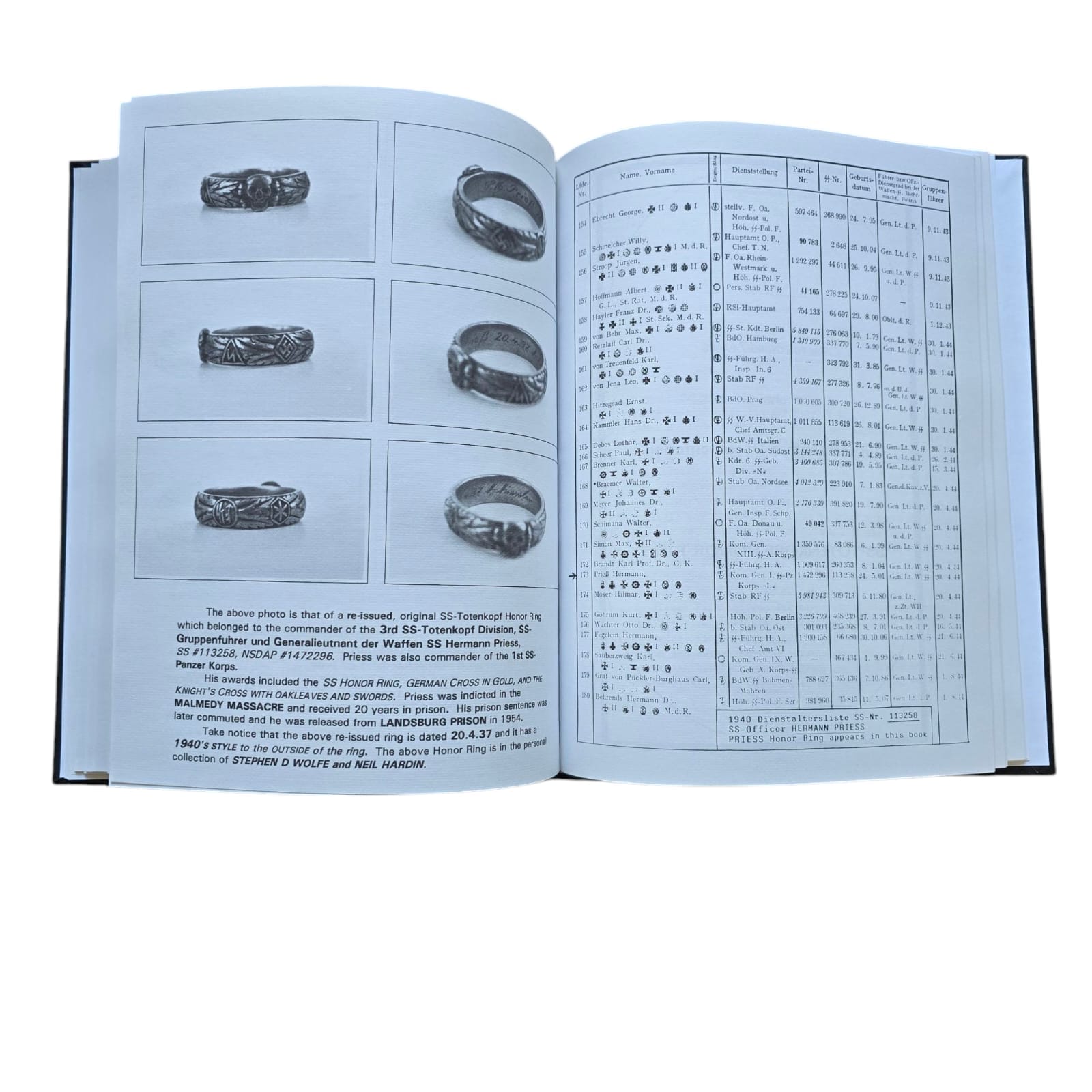 bij dit boek komt ook een exemplaar van de ss totenkopf ring van Klaus D. Patzwall, hierin staan alle nummers van uitgifte aan de ss officieren