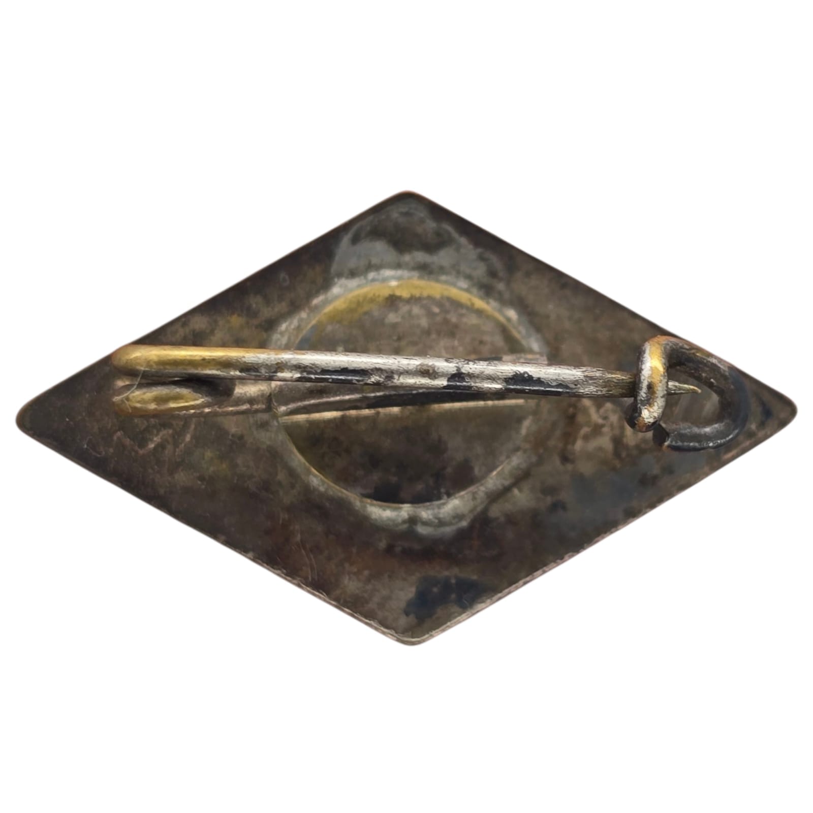 Item: The Hitler Youth (Hitlerjugend) Membership Badge was the official insignia worn by members of the Nazi youth organization. Introduced in the 1930s, it featured a red–white–black diamond design with a black swastika in the center. It symbolized loyalty to the Hitler Youth and the Nazi Party, and was worn on civilian clothes or uniforms.