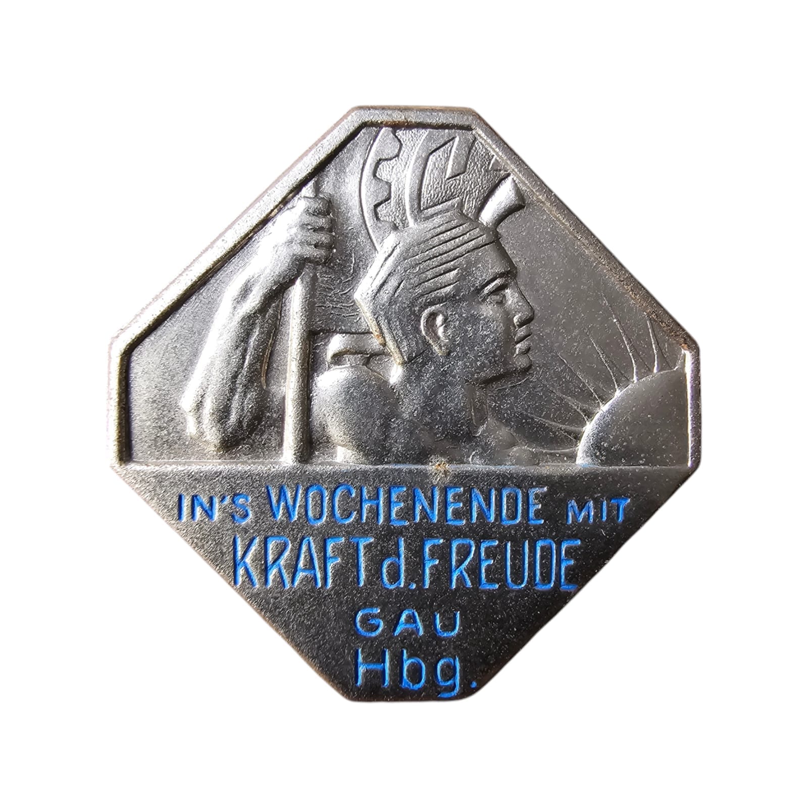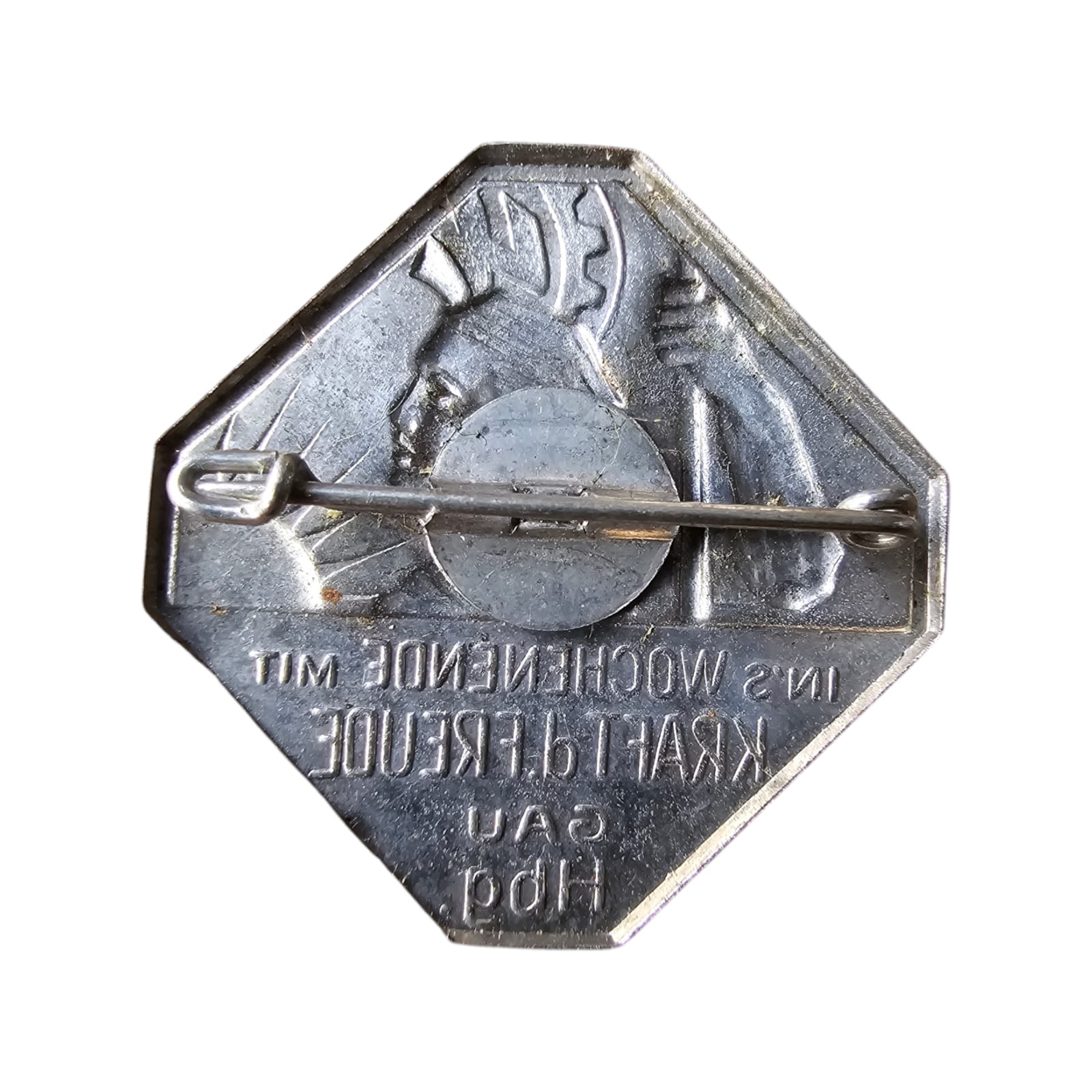 Item: The KDF Grenzgau Koblenz-Trier Pin is a propaganda badge from World War II, associated with the Kraft durch Freude (KDF) organization. Kraft durch Freude, meaning “Strength Through Joy,” was a Nazi organization founded in 1933 as part of the Deutsche Arbeitsfront (DAF), aimed at organizing leisure and recreational activities for German workers. The Grenzgau Koblenz-Trier region refers to a geographic area along the western border of Germany, near the cities of Koblenz and Trier.