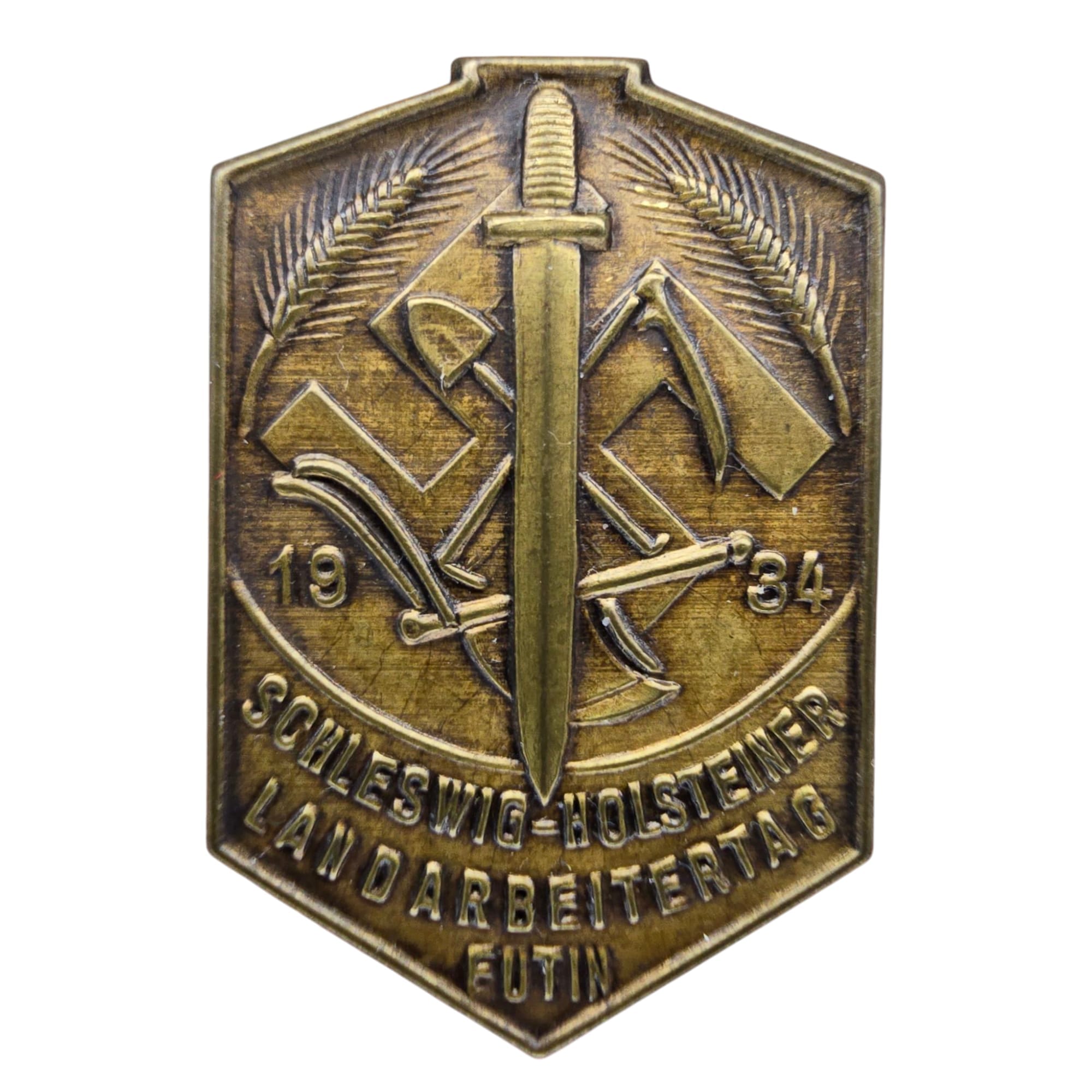 Item: Tinnies, ook wel bekend als "Veranstaltungsabzeichen" of "tinnie badges", waren kleine metalen of kartonnen insignes die in nazi-Duitsland werden uitgegeven ter gelegenheid van evenementen, propaganda-acties en liefdadigheidsinitiatieven. Ze werden gedragen op kleding als tijdelijke decoratie en waren vaak goedkoop geproduceerd, meestal van zink, aluminium, tin of bakeliet.
