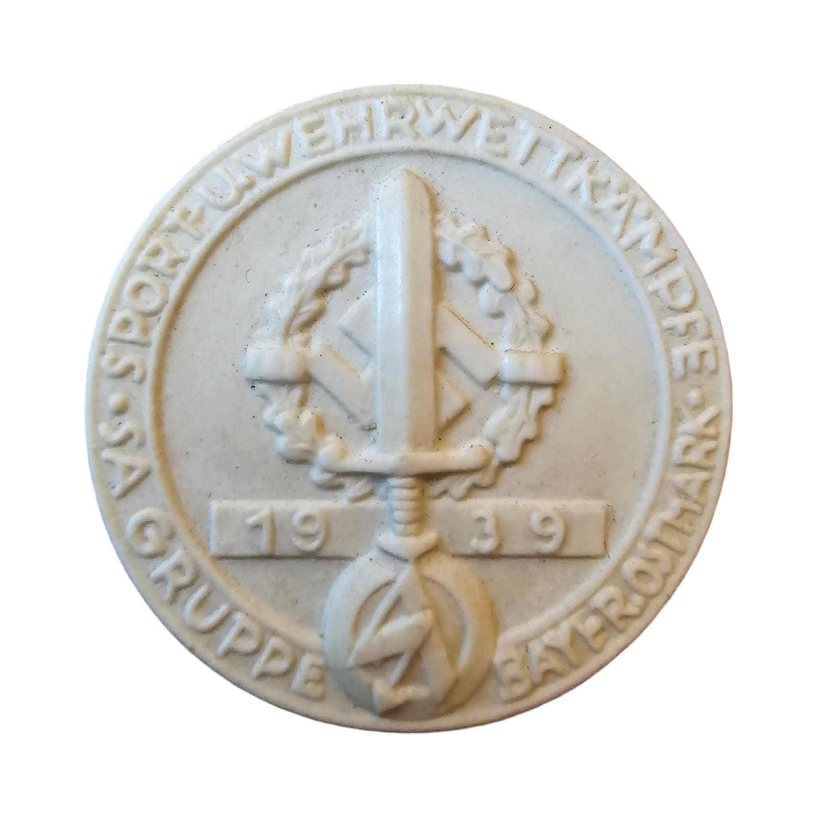 SA tinnies were often distributed during special SA events, marches, sports competitions, and party rallies, and were meant to foster camaraderie and pride within the SA. They frequently featured SA symbols, such as daggers (symbolizing loyalty), eagles, and swastikas. The date and location of the event were sometimes also inscribed on the tinnie, making these small badges a form of keepsake for those who participated.