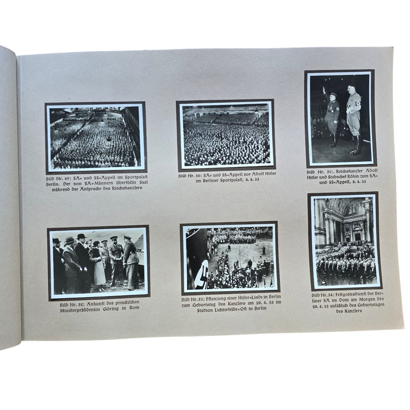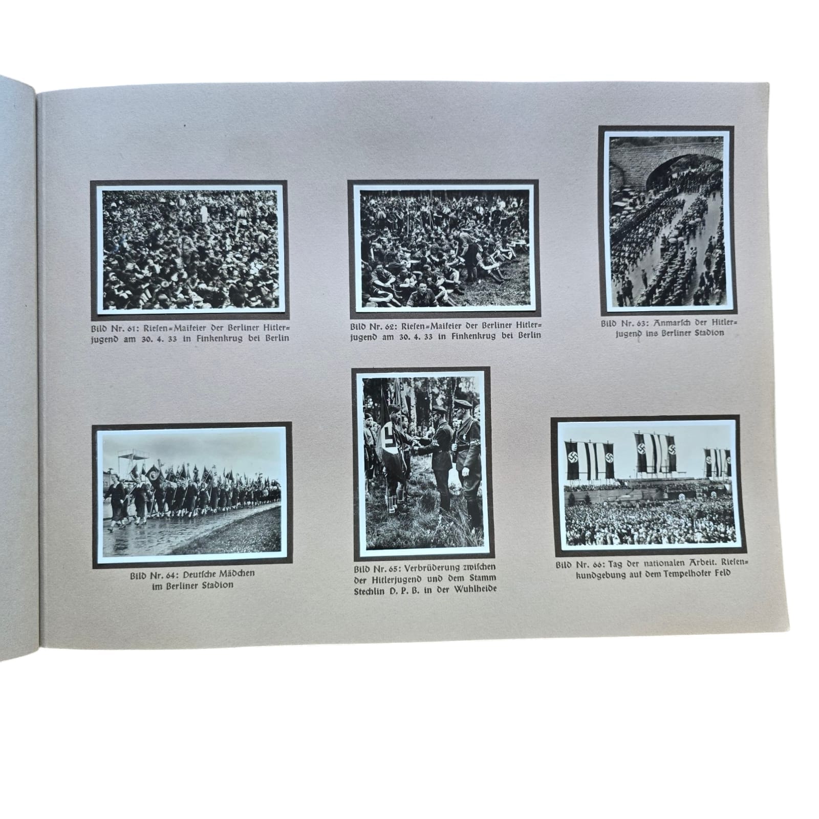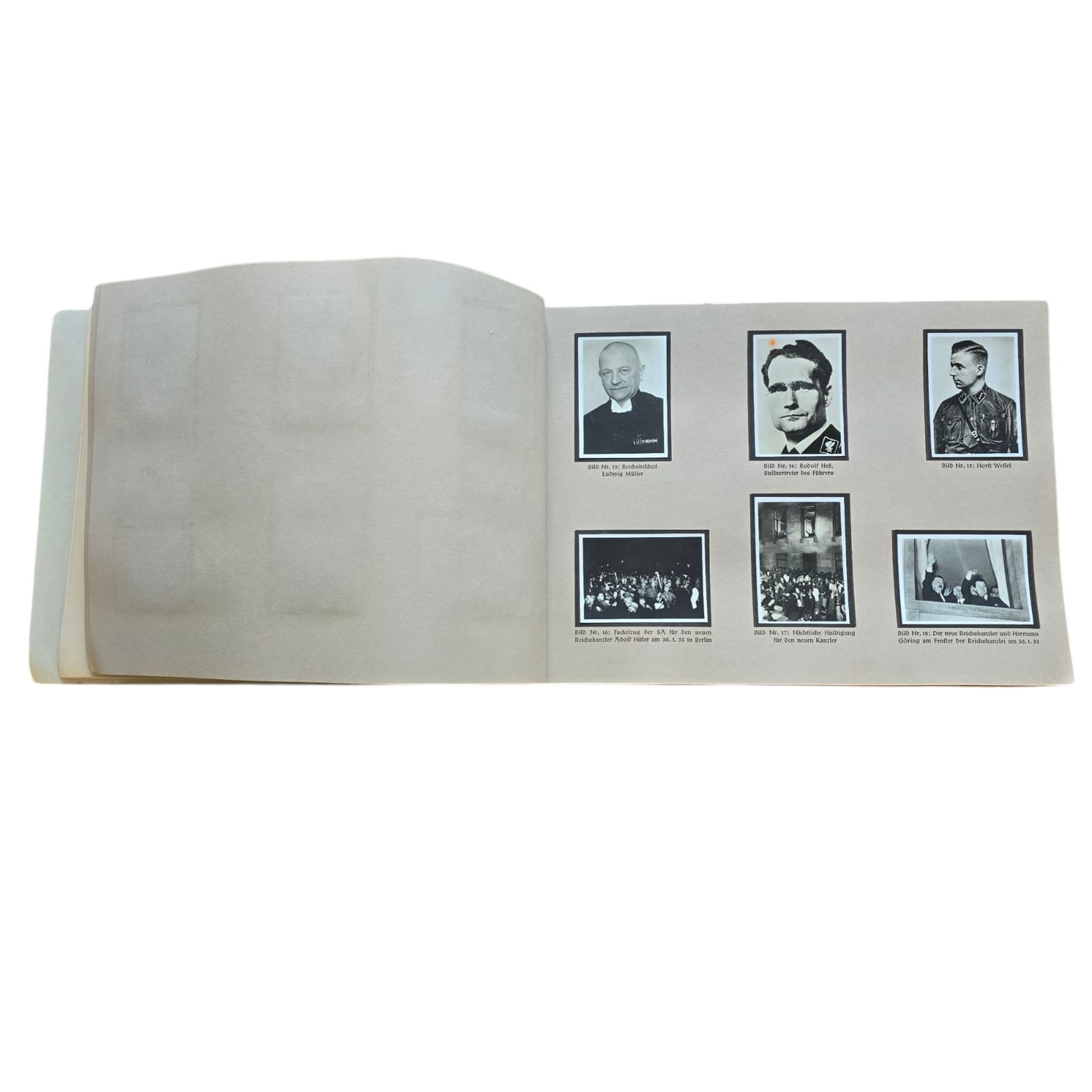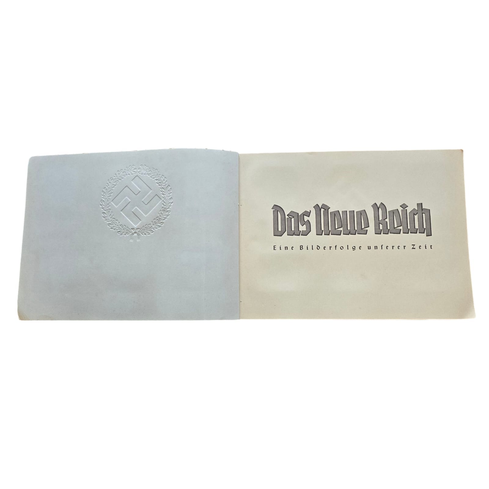 Item: The Das Neue Reich cigarette album is a collectible propaganda photo album produced in Nazi Germany, likely in the late 1930s. It was filled with cigarette card inserts depicting the rise of the Third Reich, its leadership, architecture, and key events. These albums were part of state-controlled propaganda efforts to promote Nazi ideology and achievements. A fully complete album is rare and serves as a historical artifact, offering insight into the visual and political messaging of the time.