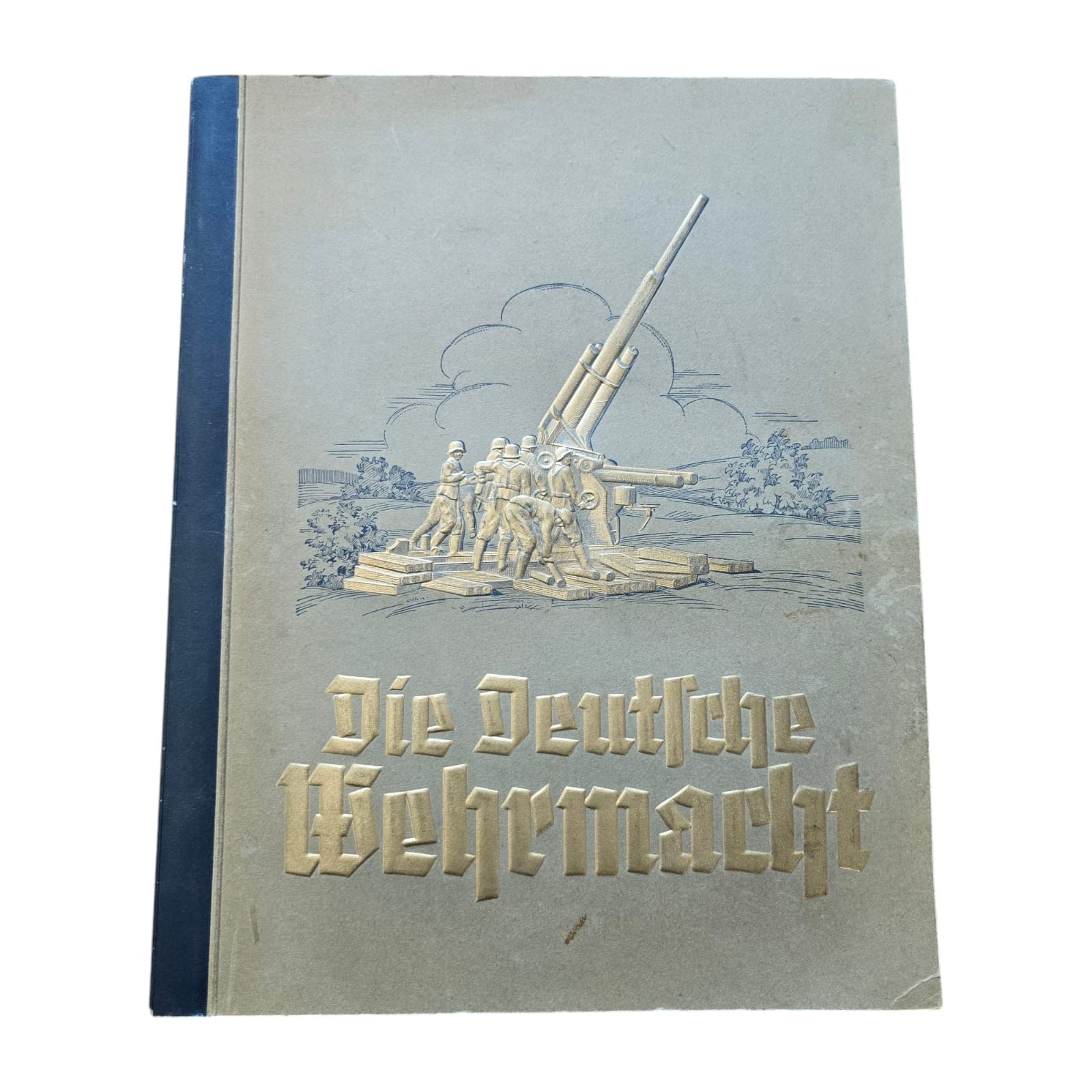 Item: The Die Deutsche Wehrmacht cigarette album is a collectible photo album produced in Nazi Germany, likely in the late 1930s. It was created as a propaganda piece and features numerous images of the German armed forces, including the army (Heer), air force (Luftwaffe), and navy (Kriegsmarine). The album was filled with cigarette card inserts, which were collected and glued into designated spots. These albums were popular at the time and provided a glorified depiction of the Wehrmacht’s strength and organization. Today, they serve as historical artifacts, offering insight into the propaganda and military imagery of the era.