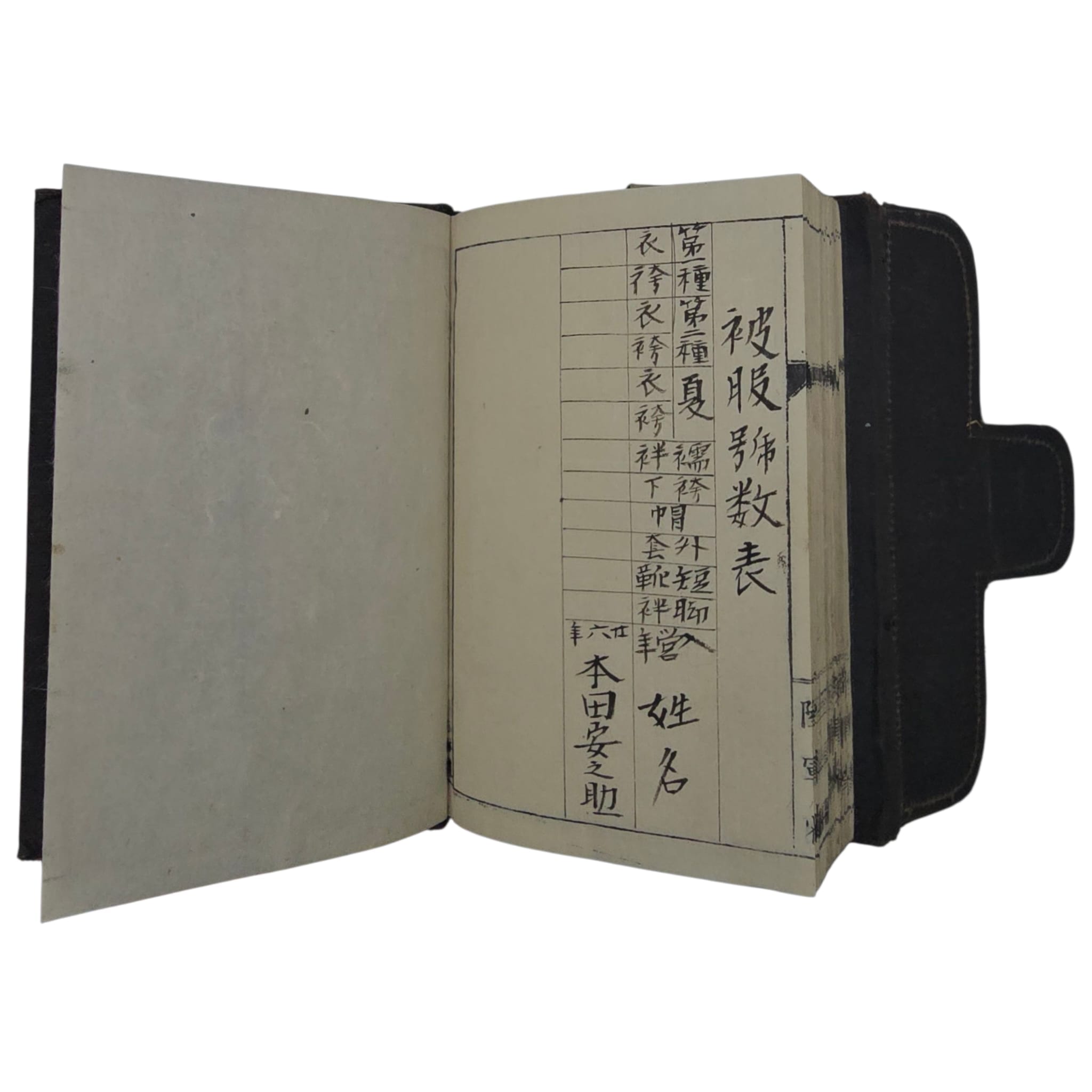 Item: Japanse soldaten kregen tijdens de Tweede Wereldoorlog en de oorlogen daarvoor een militair zakboekje (軍隊手帳 – Guntai Techō). Dit was hun officiële identiteits- en dienstboekje, dat ze altijd bij zich moesten dragen. Het bevatte persoonlijke gegevens, militaire eenheid en rang, training, uitrusting, medische info en stempels van hun dienstverloop. Veel boekjes bevatten ook persoonlijke notities of gelukstalismannen. Het was een belangrijk document, vergelijkbaar met het Duitse Soldbuch.