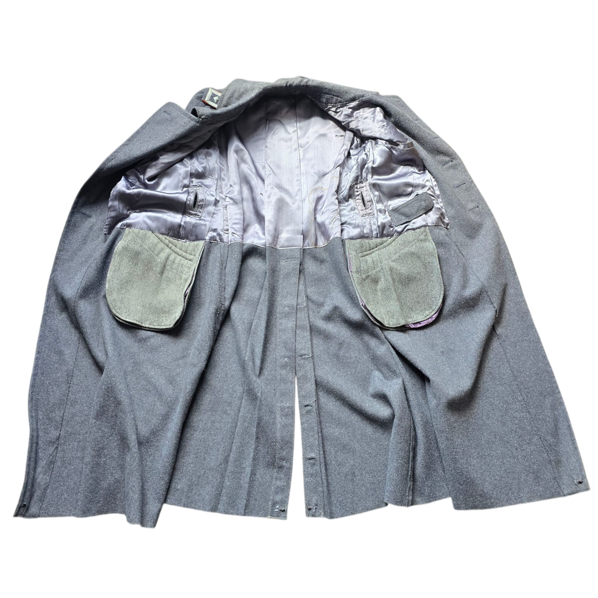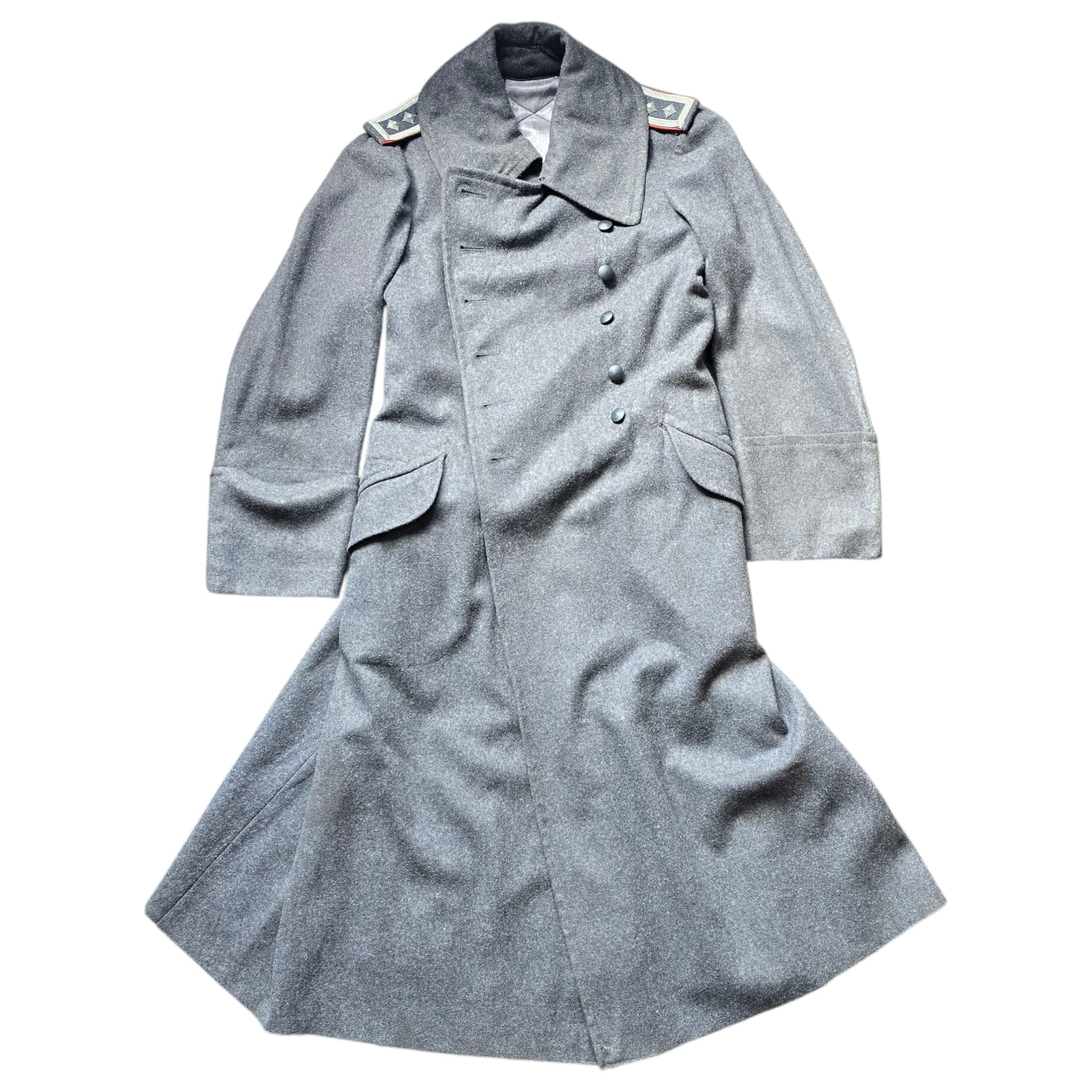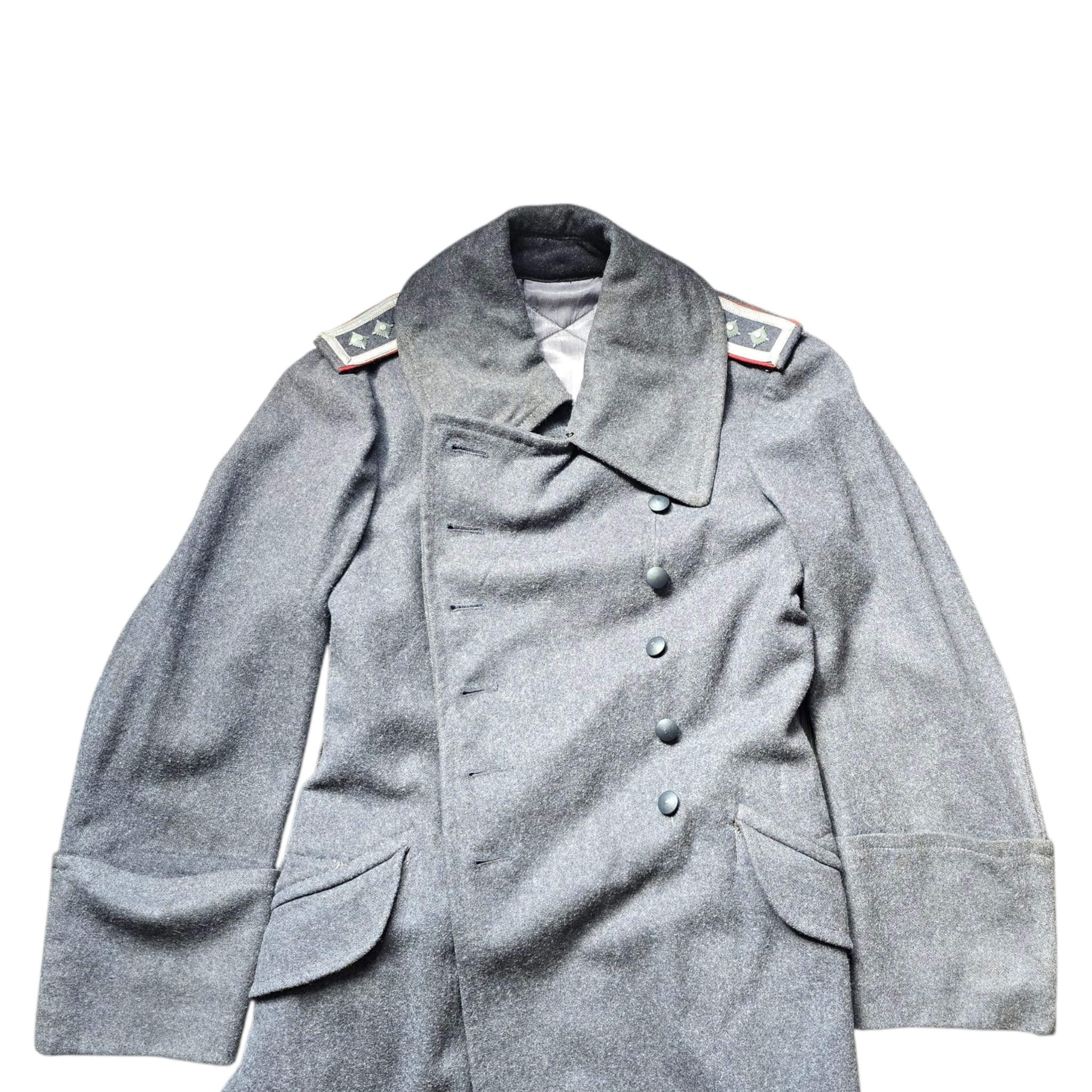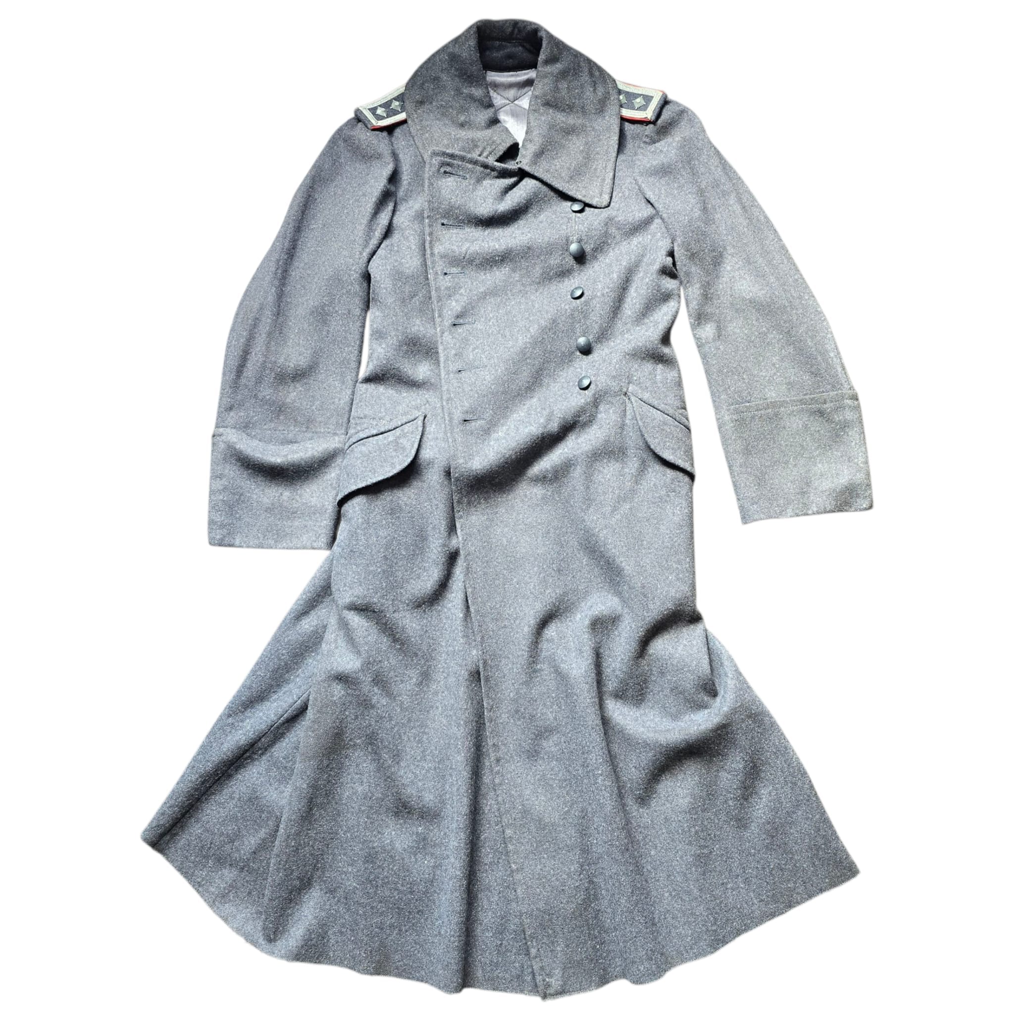 Item: The Luftwaffe greatcoat was a long, heavy overcoat worn by personnel of the German Air Force (Luftwaffe) during World War II. The coat was designed to protect soldiers against cold, wind, and rain, especially while serving on airfields or in the field. It was worn over the uniform and often featured shoulder boards and sometimes insignia indicating rank or role. In addition to its functional use, the greatcoat also contributed to the recognition and appearance of the Luftwaffe.